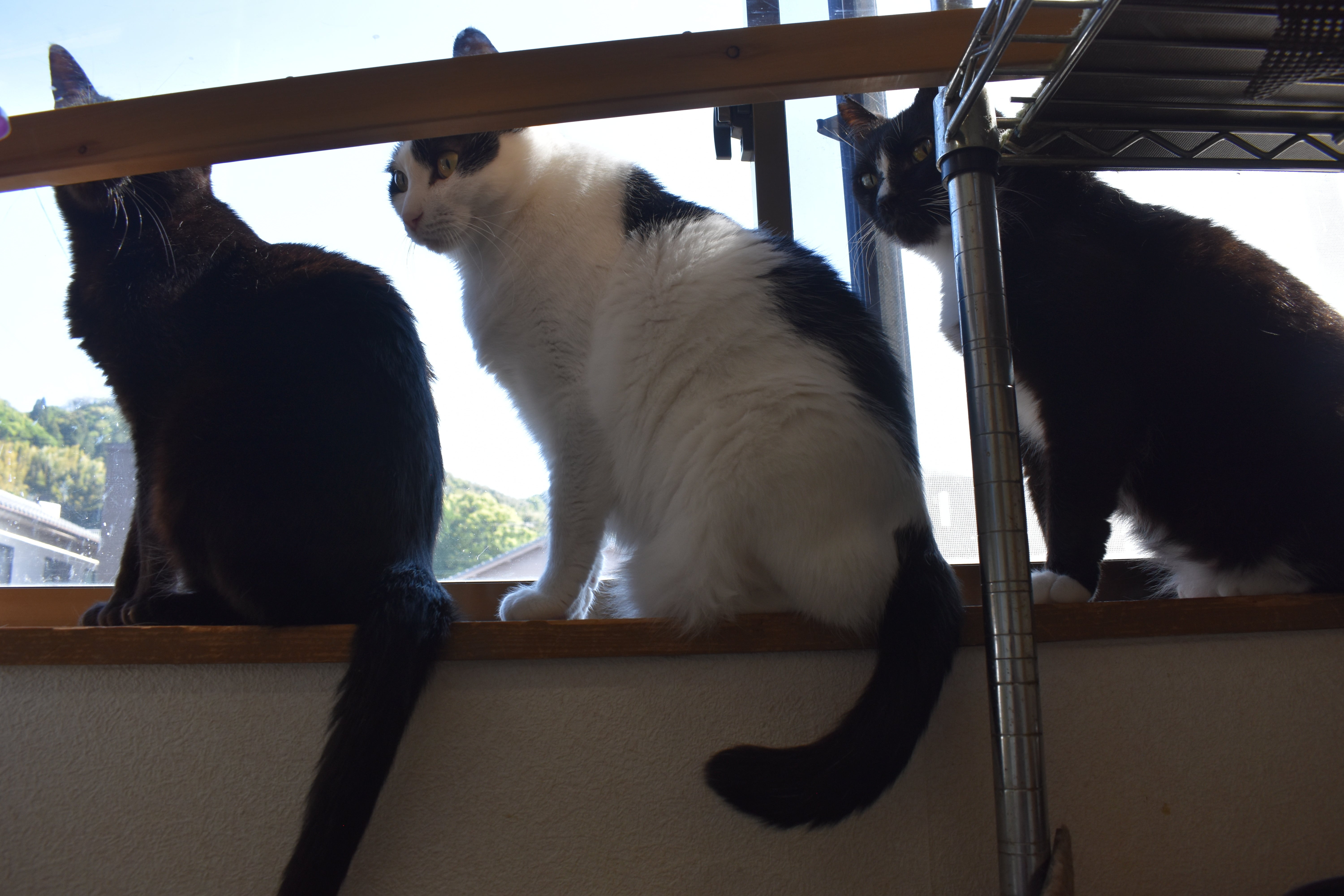 この部屋には、お父さん猫のハチ君と2匹のお母さん猫(ハナちゃん、モミジちゃん)とその子ども達、外猫だったミーナちゃんとその子ども達、あとから来た元外猫のドメニコ君とチニ君の計19匹が暮らしています。