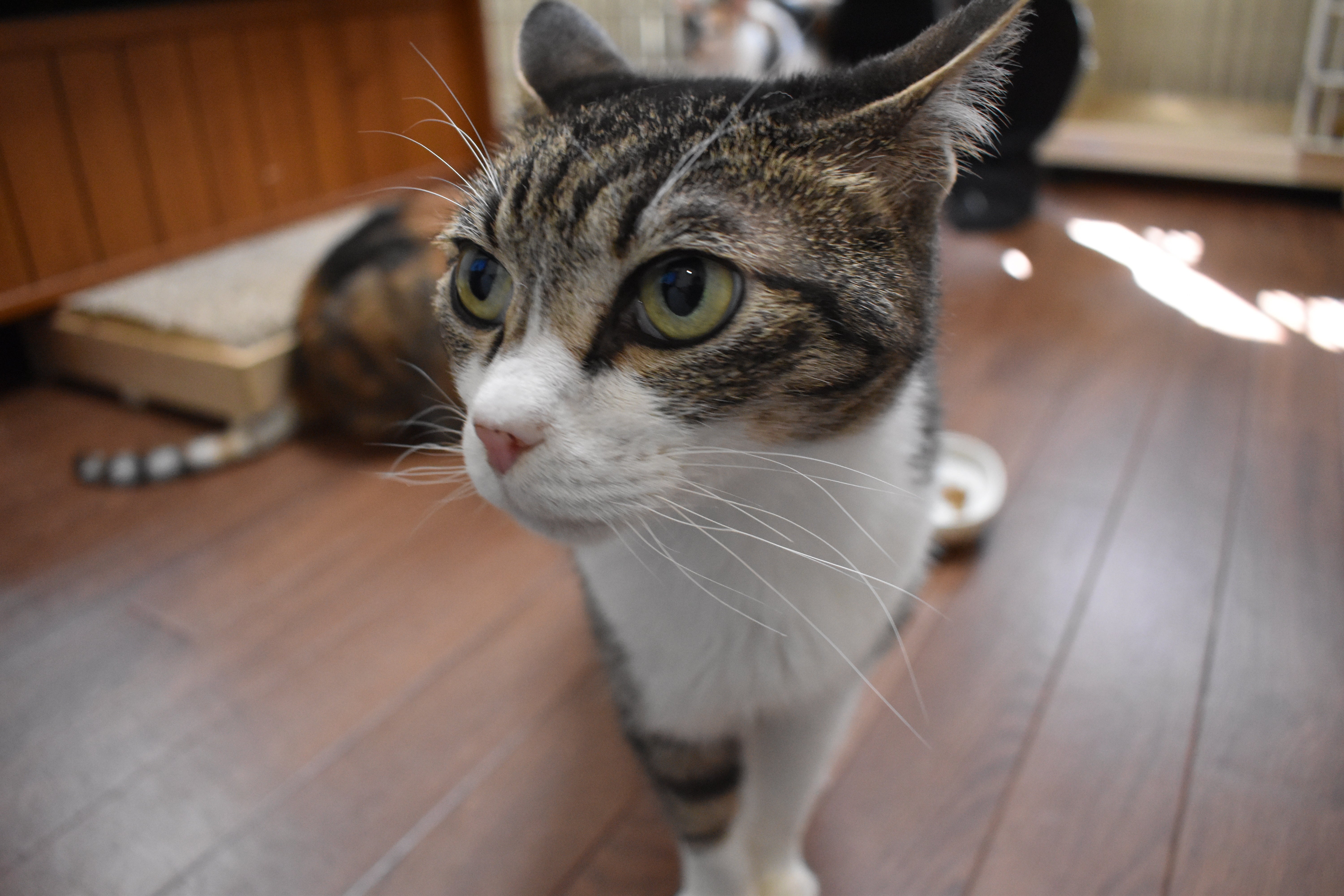 ルナはラテン語で月、ギリシャ神話では月の女神です。女神様のような美人猫ちゃんです。ケージを開けて近づくと逃げてしまいましたが遠巻きに写真が撮れました。