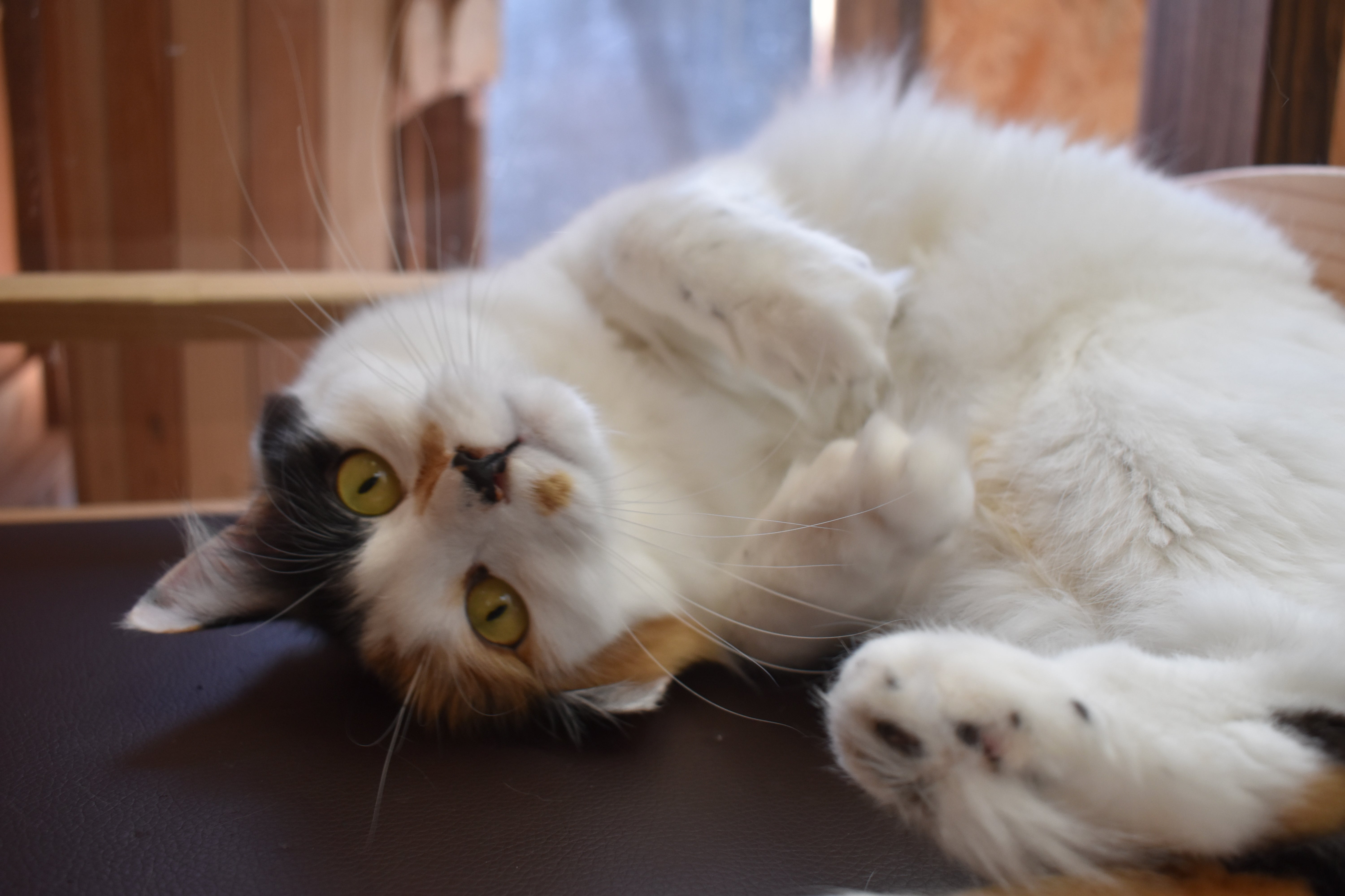 同じくモミジちゃんの子のマリーちゃん、ルナちゃんよりは小さいですが、左胸?の所に若干白い毛がありますね。綺麗な猫ちゃんです。