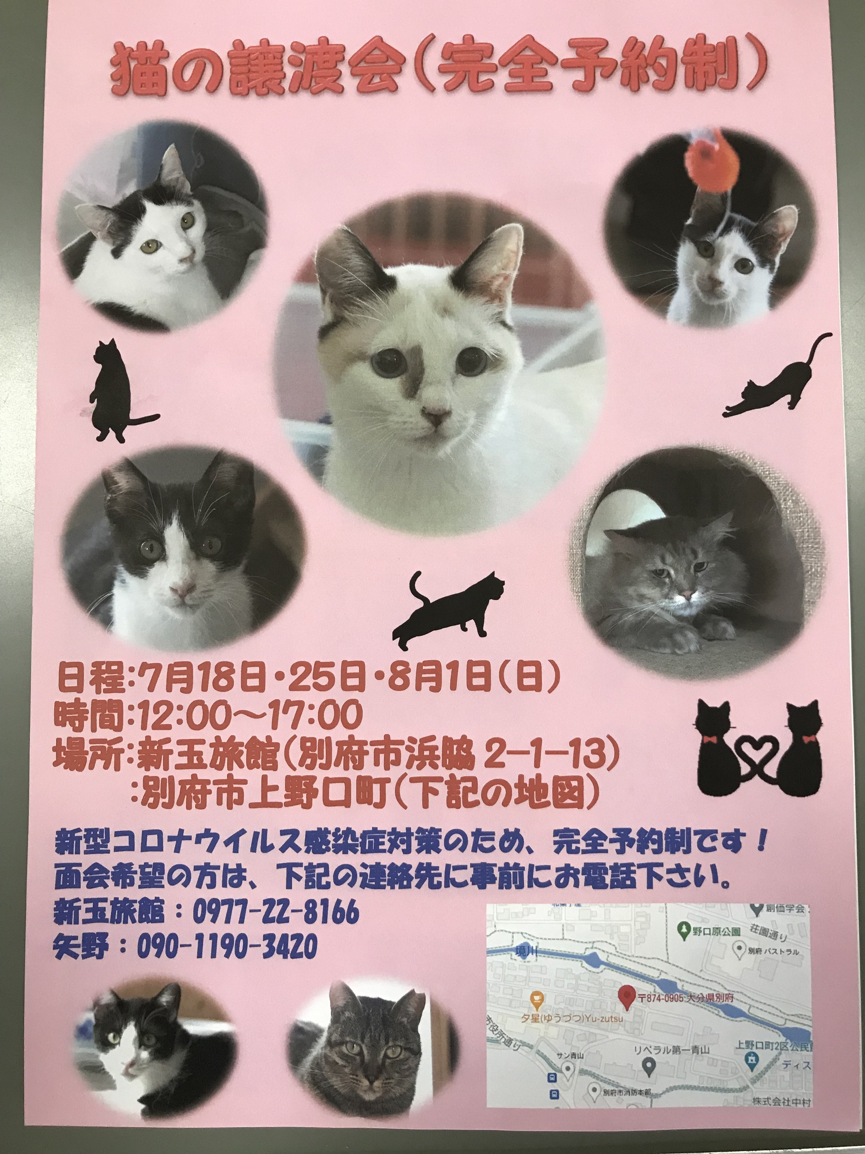 7月25日と8月1日日曜日に新玉旅館と上野口で完全予約制にて対面できます。