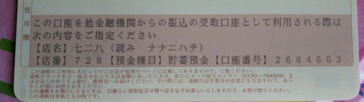 ゆうちょ銀行 店番 728