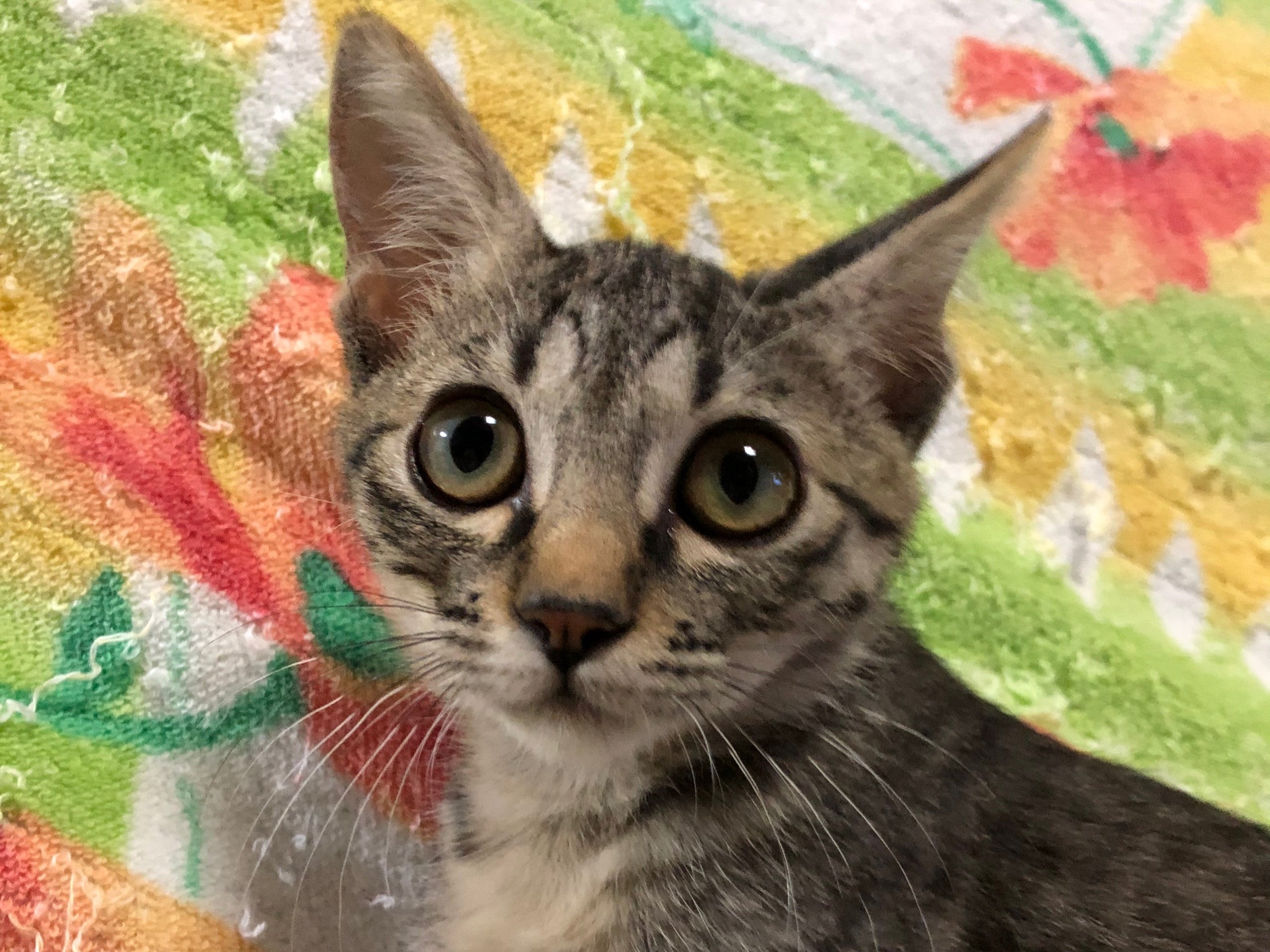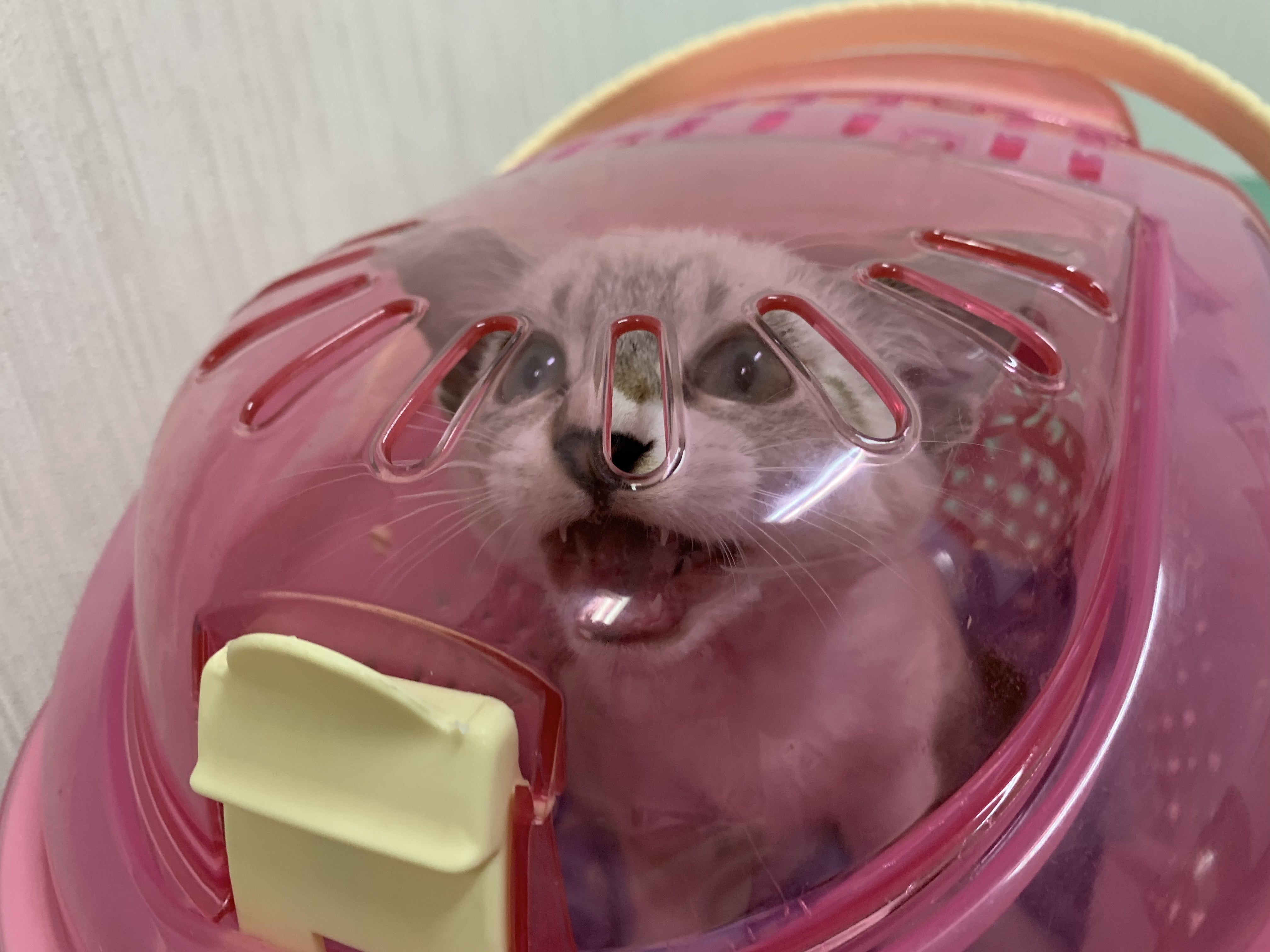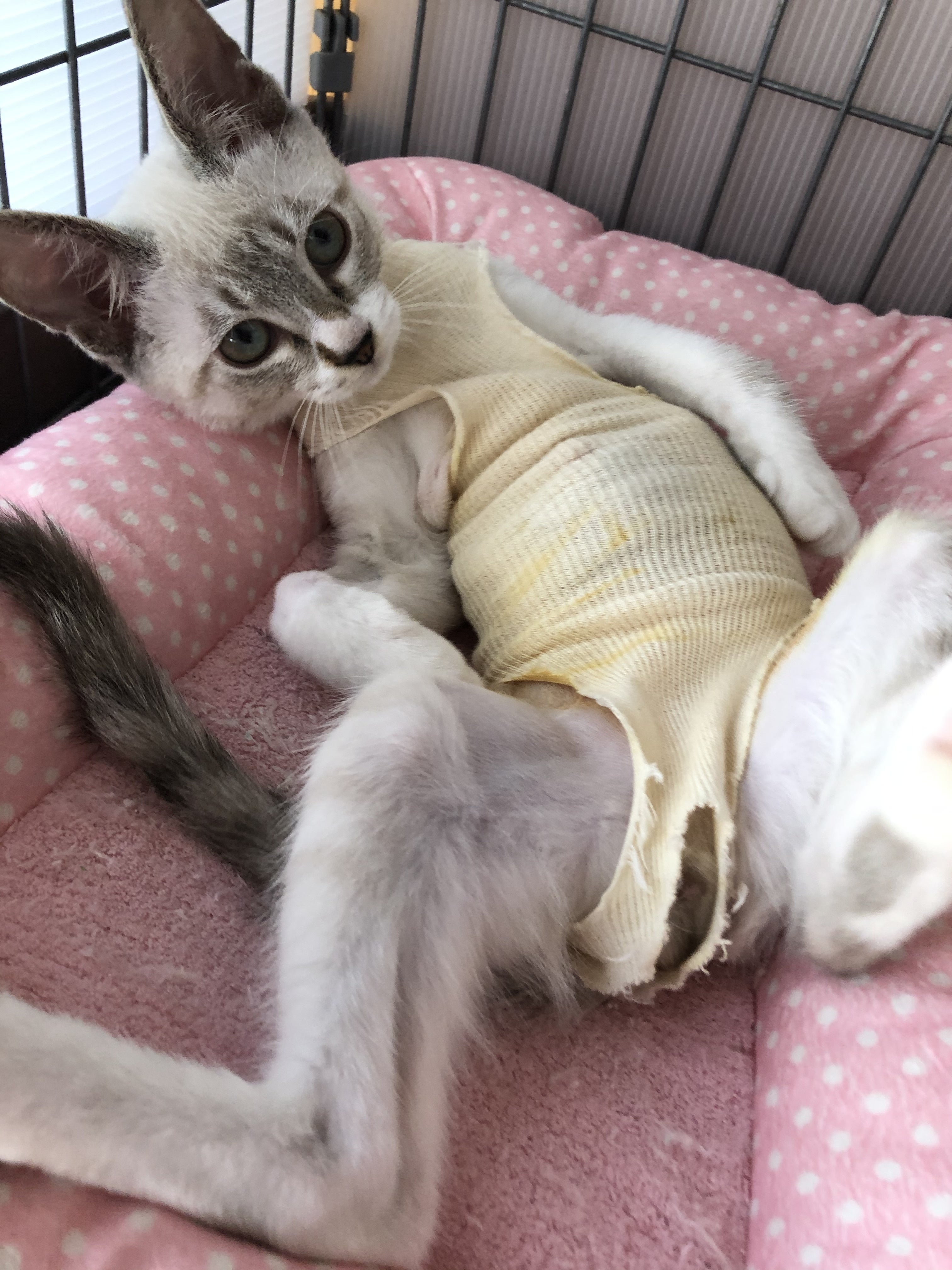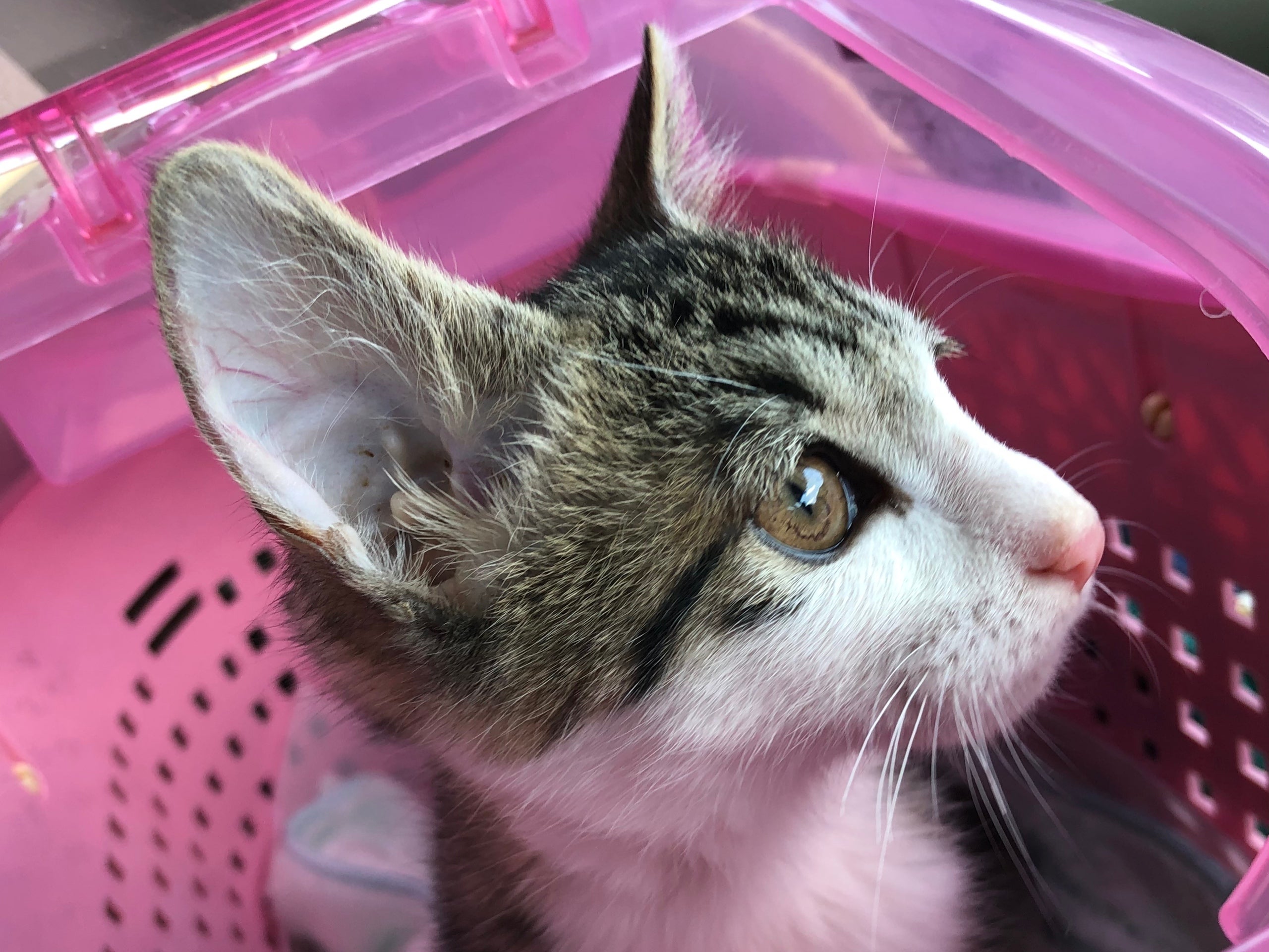 こんばんは。今日も預かりBABAからのご報告です。クラウドファンディングを始めて18日目の今日は、ご支援下さった方の数が100名を超えました!こんなにもたくさんの方に支えて頂き、勿論感謝の気持ちしか無いのですが、それに加えて私、本当に感激しております…\(^o^)/本当にありがとうございます!!!今日は動脈管開存症という難病と仮診断されているプチちゃんの近況報告です。前回ご紹介した時よりも、少し育って顔付きがちょっとおとなびてきているのですが、行動はとても子猫ちゃんらしくて、この写真を撮った後は残像のような写真しか撮れない程にびゅんびゅんと走り回って遊んでいます(o^^o)でも流動食しか飲めないせいなのか、成長はとても遅くて、今もまだ痩せっぽっちのプチちゃんです( ; ; )コロ助ちゃんとマメ蔵ちゃんの手術を引き受けてくれた病院の先生からは、プチちゃんの手術は難易度が高くて引き受けられないと言われてしまい、精密検査をしてもらう病院で循環器内科の専門医の手術になる可能性が高いのですが、まずは精密検査をして病気の確定をした上で、手術の可否が分かるので、ドキドキしながら検査日を待っているところです。どうか色々なことがスムーズに進んでくれますようにと願うことしか出来ませんが、嘔吐の回数もかなり減っているプチちゃんの体調管理をしっかりとやっていきたいと思います。頑張る子猫ちゃんたちの応援とご支援を、どうぞ引き続き宜しくお願い致します!!!