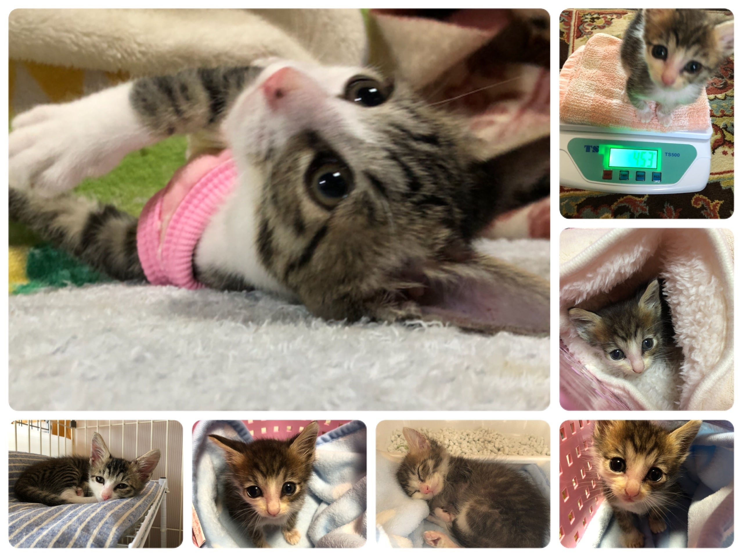 こんばんは。今日も預かりBABAの更新です(^ ^)本日も温かなご支援を頂き、ご支援の額が90万円を突破致しました!クラウドファンディングをやろうとゴンママさんとお話ししていた時、ご支援が集まるんだろうか、集まらなかったらこの子猫ちゃん達にどう向き合っていけば良いのかなど、本当にたくさんの不安がありました。その不安をはじき飛ばしてくださるこのご支援に心から感謝致します。本当にありがとうございます!!今日は病院の先生から先日外注に出したマメ蔵ちゃんの検査結果が出たと連絡が来て、決して良い結果ではなかったのですが、早々にやらないと延ばした方が良くないから、と言うことで手術の日が来週末に決まりました。リスクが大きいことや予後が悪い事例が多いことなど、たくさんの問題点をお聞きして、気持ちは落ち込みもしましたが、手術をしなければいつまた発作が起きてしまうかもしれないマメ蔵ちゃんなので、先生を信じて手術日までしっかりとマメ蔵ちゃんのケアに励みたいと思います!今日の写真は先日ゴンママさんと病院に行った時の可愛いマメ蔵ちゃんです(o^^o)なかなか育ってくれなくて痩せっぽちですが、きっと手術はうまく行く!と念じながら、手術までの日を過ごしたいと思います。どうか皆さまも頑張る子猫ちゃんたちを見守り応援してくださいね!!!そして引き続きクラウドファンディングへの応援も宜しくお願い致します!!