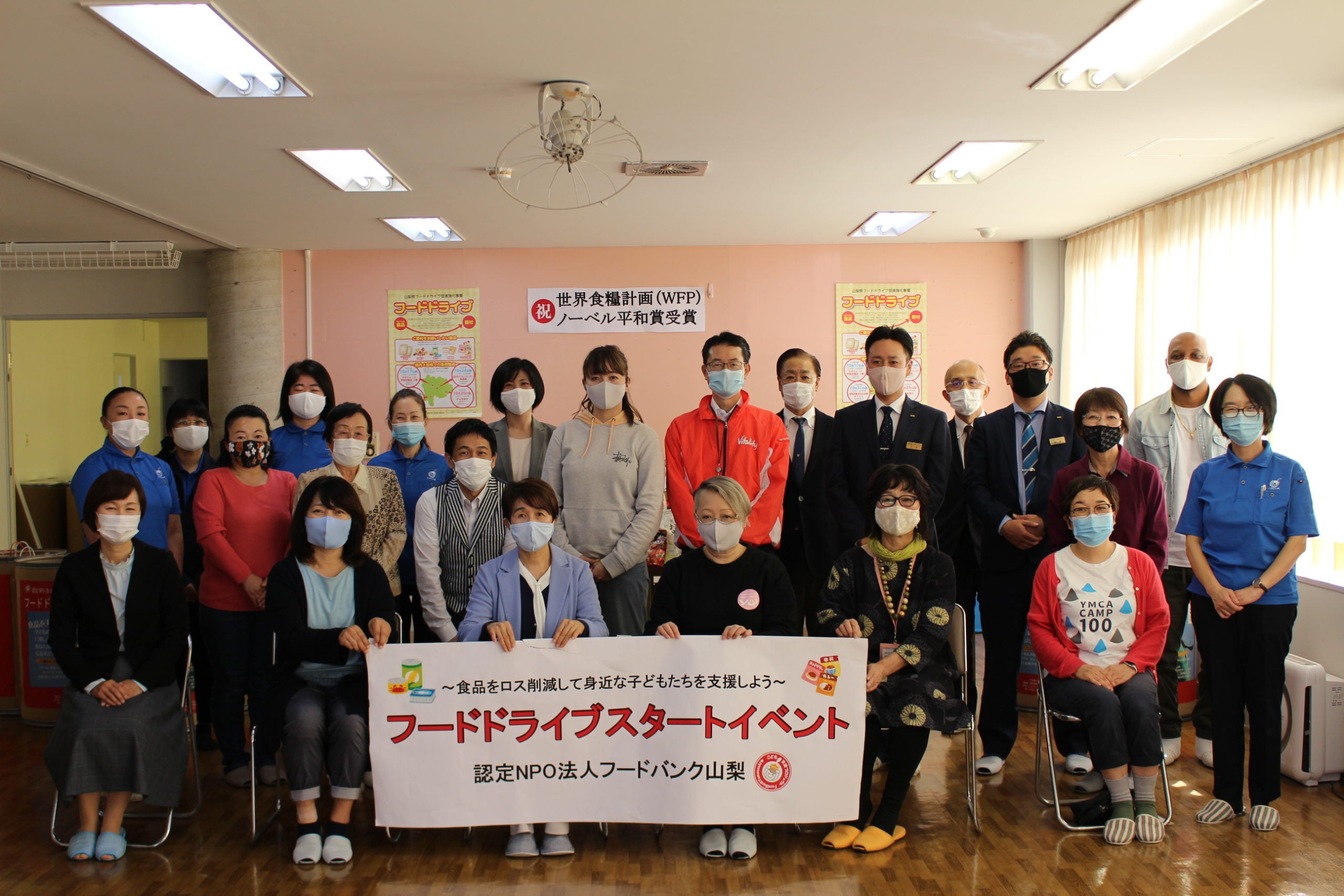本日、世界食料デーに合わせてフードドライブがスタートいたしました!その為のスタートイベントを実施し、企業・団体の皆様から多くの食品をご寄贈いただきました。また今回は、フードバンク山梨の活動に賛同、協力をくださっている大友剛さんも応援に駆けつけて下さり、マジックショーを披露いただきました。素晴らしいマジックに多くの歓声があがりました。さらに、その後はフードバンク山梨の紹介ムービーの初公開と、SDGs推進イヤー宣言を行いました。