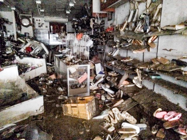 店舗の下駄、草履、靴、什器、住居部分の家具、ありとあらゆる物が泥に塗れてダメになりました。