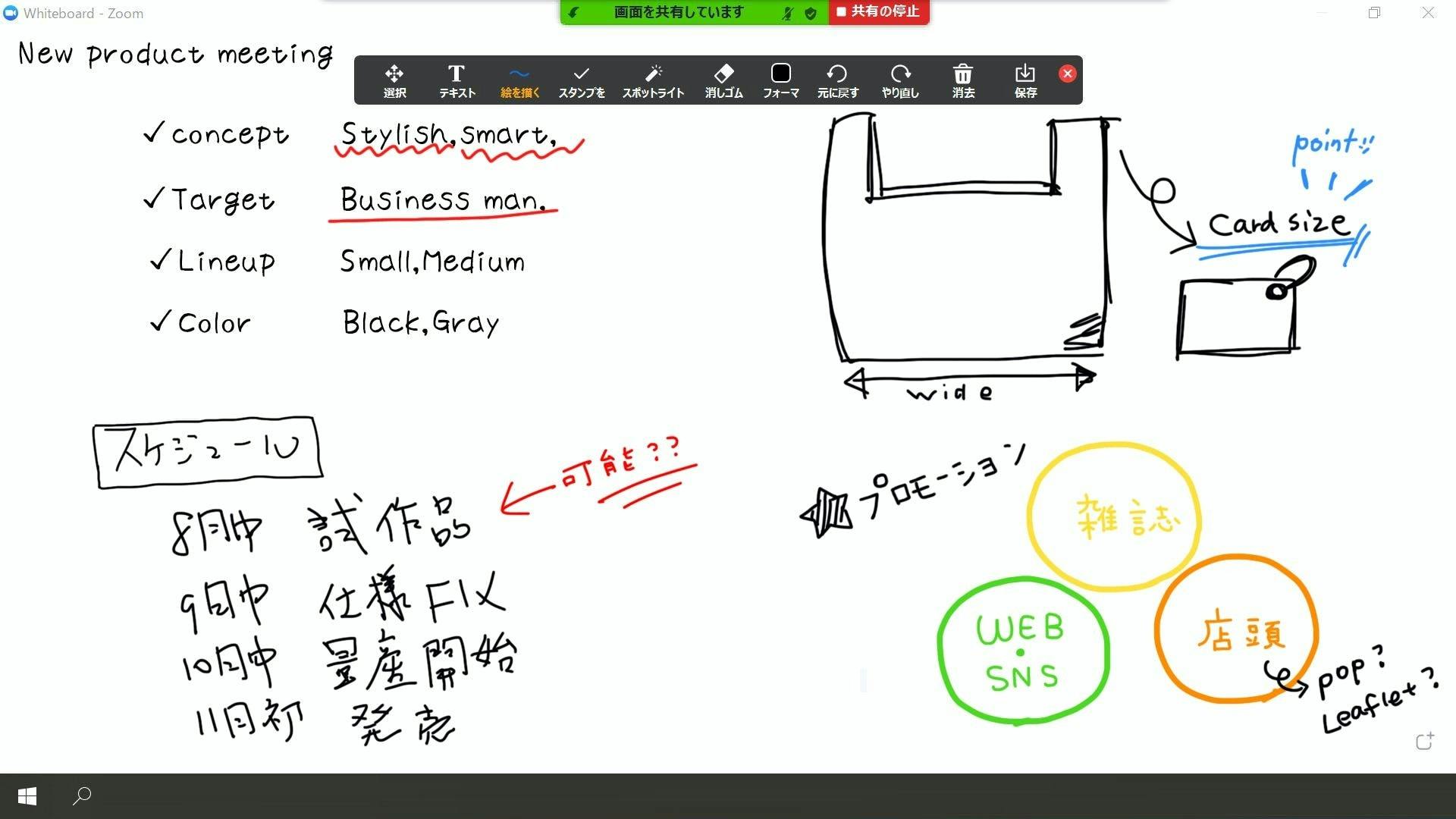 ・共有画面で表示した資料に、マークや文字を綺麗に書き込んでポイントを伝えることができます。