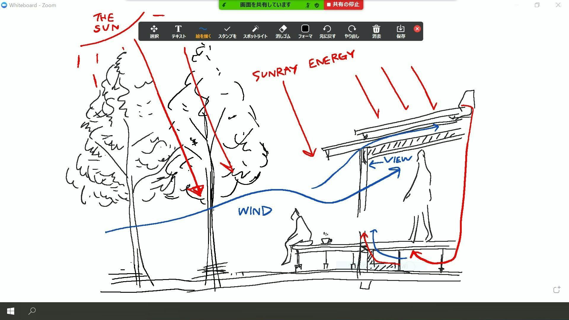 利用シーン1)・・・オンライン会議で図面や資料に手書きしてプレゼン、議論します。