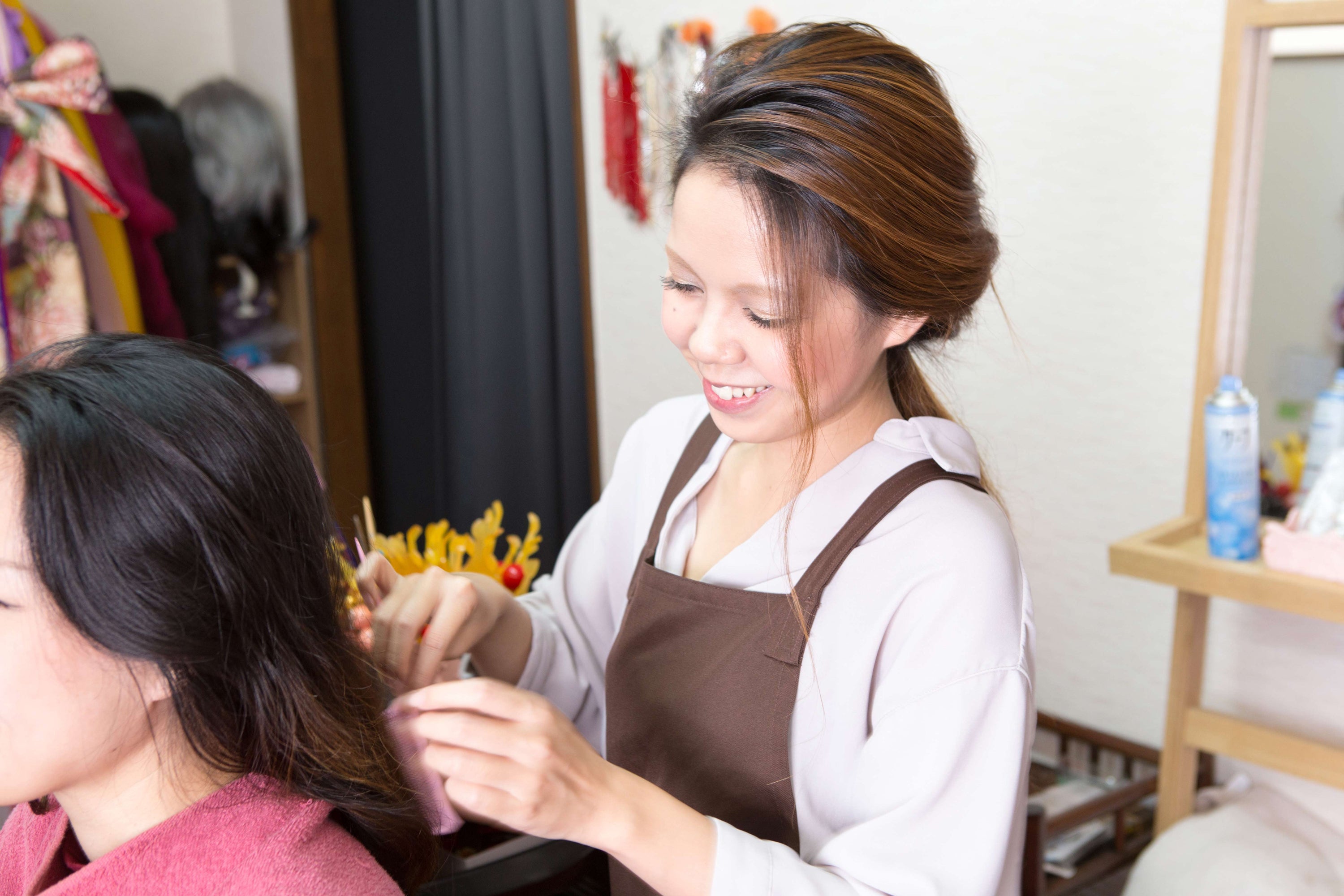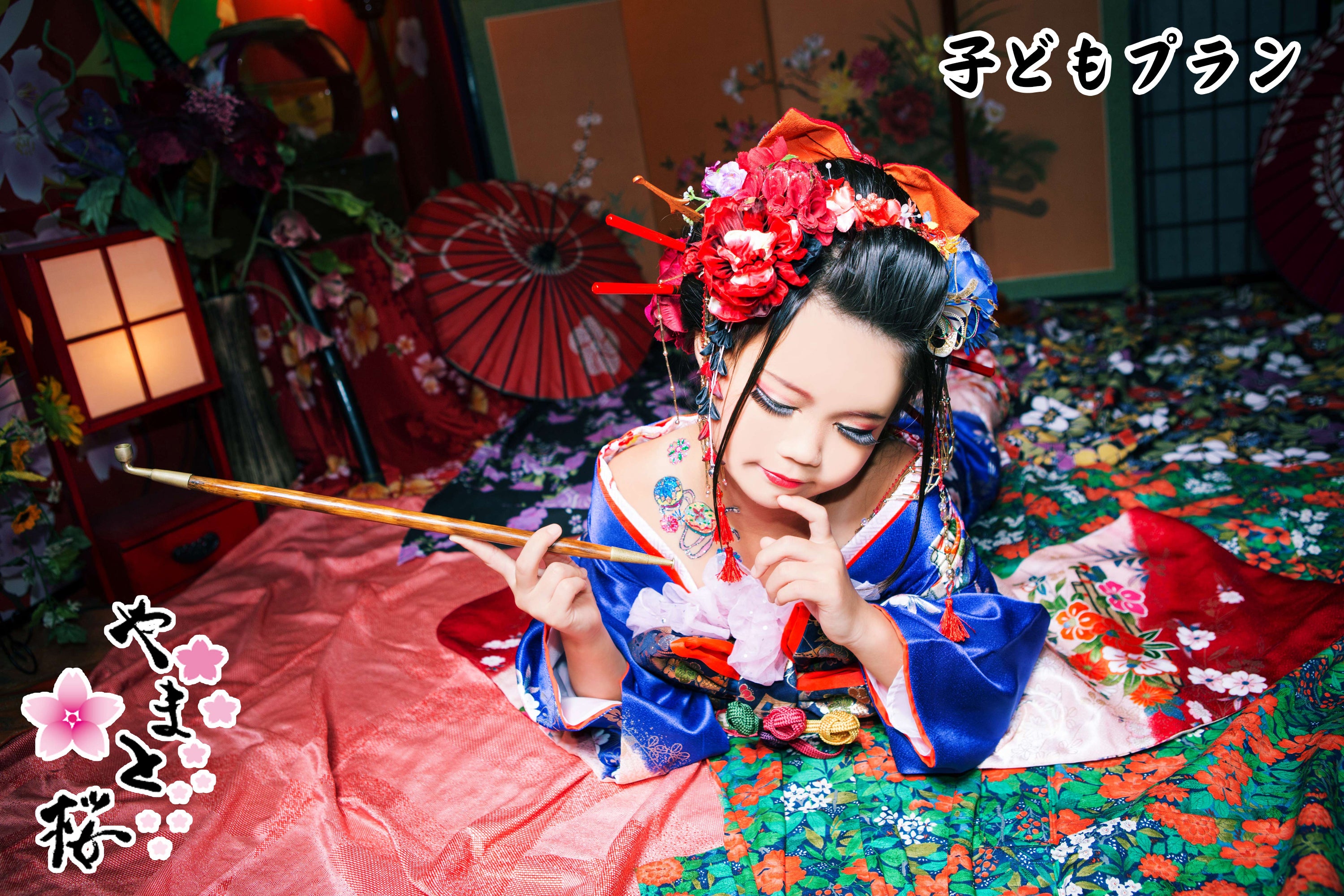 普通のフォトスタジオとは異なる本格的なメイクとヘアアレンジでとても可愛らしく綺麗に変身していただけます。大人のように花魁っぽさを出すこともできますし、花魁感をあまり出さないようなスタイルにすることも可能です。