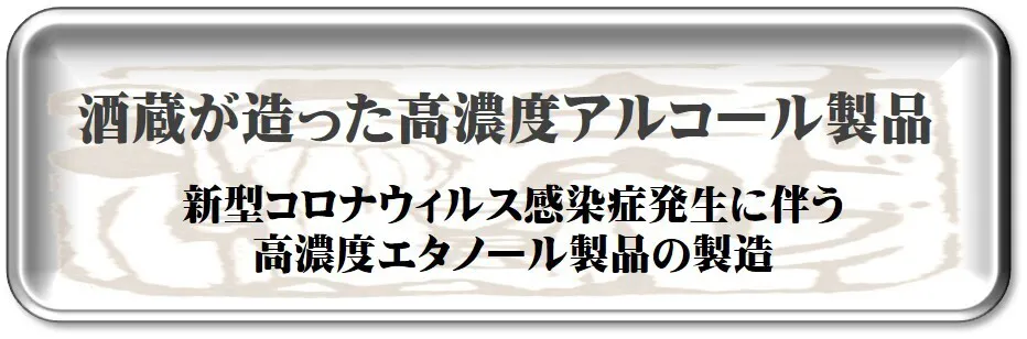 日本中の日本酒の蔵元と、焼酎の蔵元が手を組めば、日本の消毒アルコール不足に大きな貢献が出来るはずです。との声が酒蔵から上がりました。このような状況を鑑みて、当酒蔵も、消毒液不足解消に務めたいと高濃度エタノール製品の生産を開始しました。