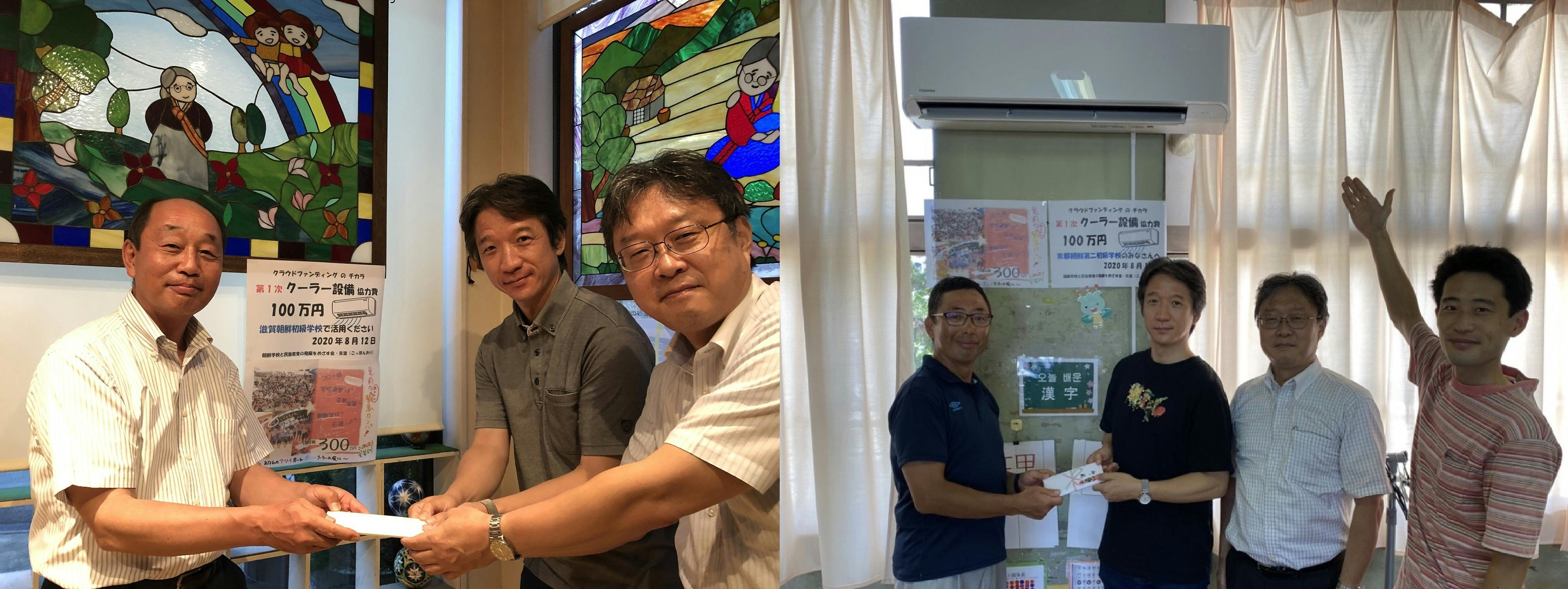 교토조선제2초급학교와 시가조선초급학교에서도 ‘이번 크라운딩펀딩 덕에 모든 교실에 에어컨을 설치할 수 있었습니다’, ‘이렇게 많은 지원을 해주신 마음에 부응하고자 빠른시일내에 설치 할 수 있었습니다’, ‘감개무량합니다’라고 전해왔습니다.