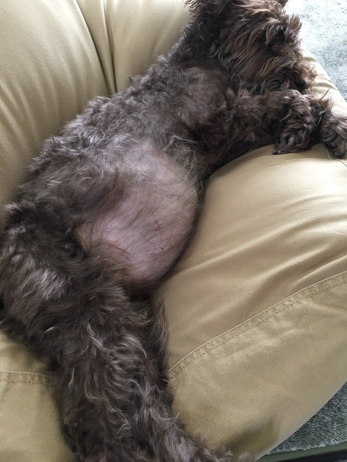 2017年4月、皮膚に異常が現れ、かゆみ止め、抗生物質注射の治療に入りました。また同時期にモモの外側に腫瘍が見つかり摘出手術をしました。もうこれ以上の苦難はないと信じた願いも届かず、この後の経過診察時に心雑音が気になると言われ精密検査をしたところ、2017年6月に心臓病の僧帽弁閉鎖不全症と診断されました。我が家にきて2年目を迎えたレントン7才でした。