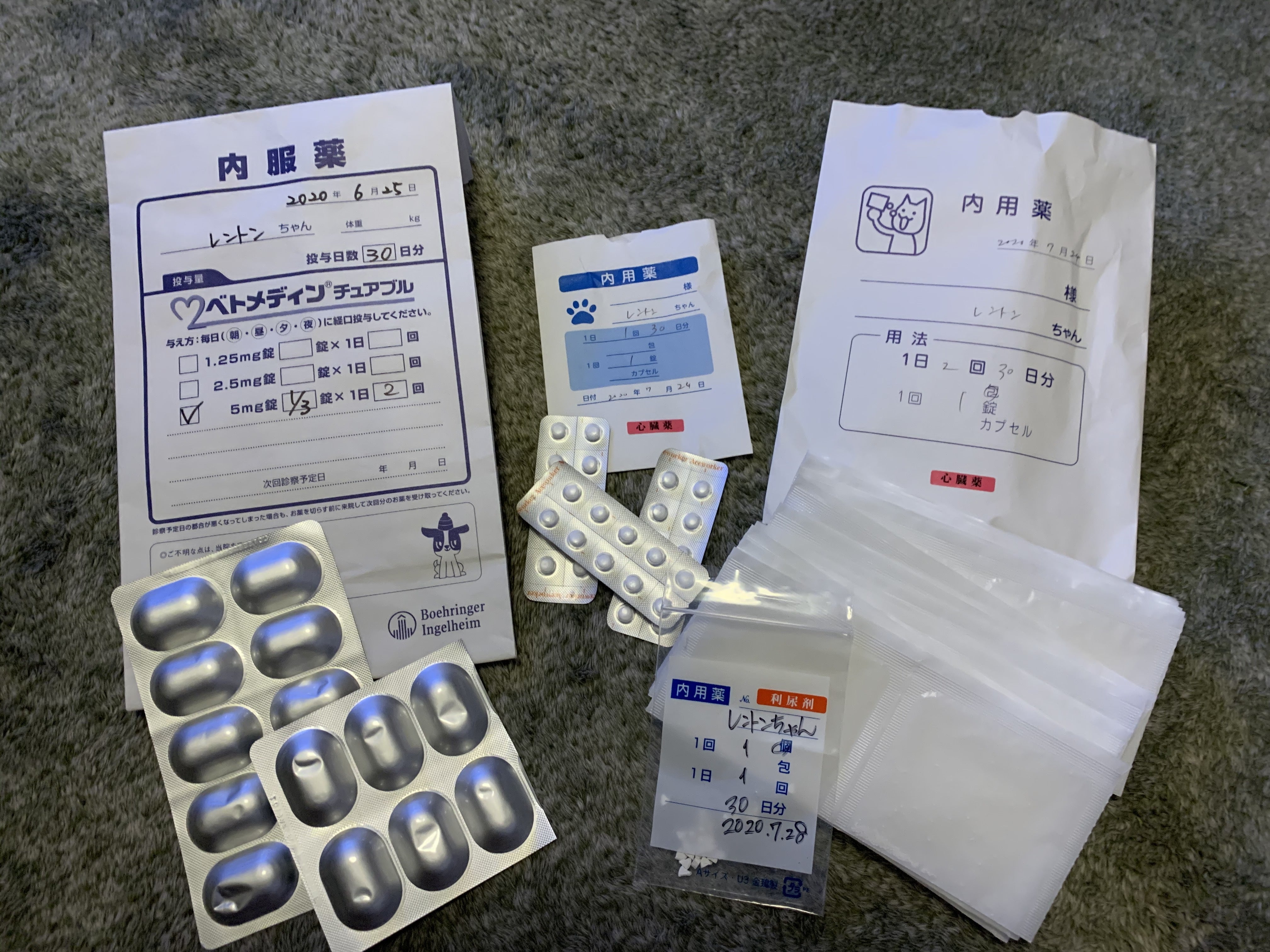 2017年8月、薬による治療を開始しましたが、薬による治療では完治させることはできません。心臓の働きを手助けしたり、心不全の症状を和らげるもので、生涯を通して薬を飲むことになります。