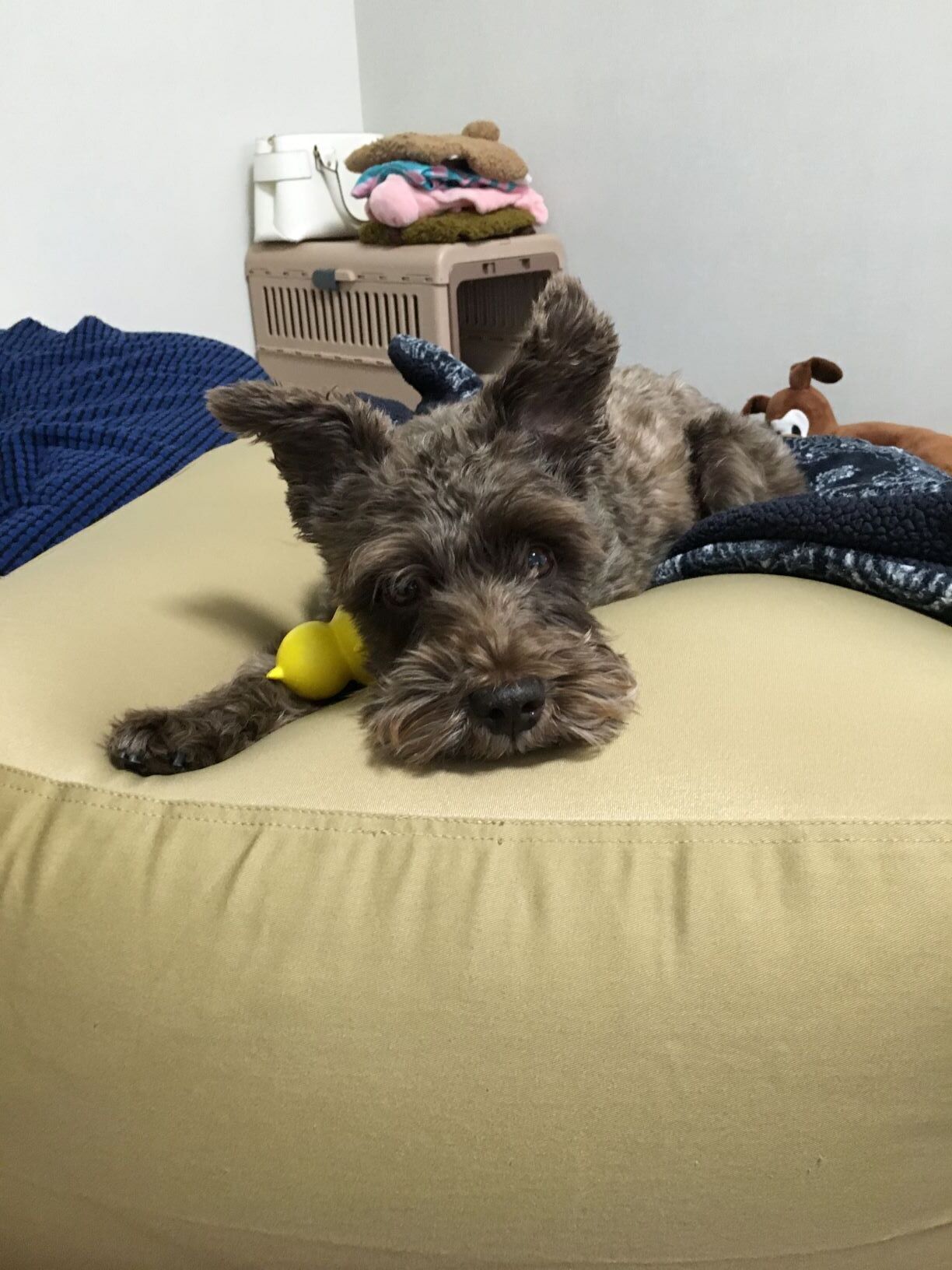 うちに来た頃は、ペットキャリーケースがレントンの居場所でした。狭くて暗い中でもレントンにとっては安心感を与えた場所だったんだと思います。そんなレントンもキャリーケースから卒業するまでにはそう時間はかかりませんでした。