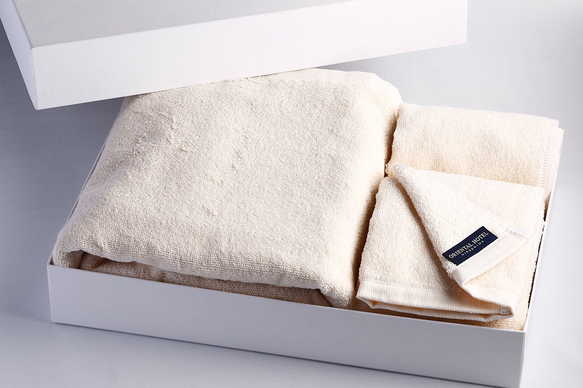 客室にも設置し、好評をいただいているオリエンタルホテル広島オリジナルの竹タオルを「バスタオル、フェイスタオル、ハンドタオル」の3点セットでお届けします。 (総額6,050円)