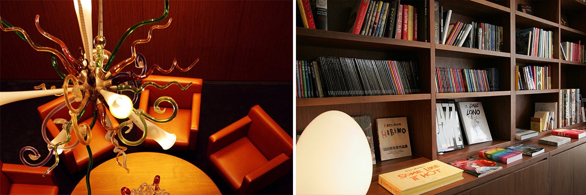 ロビーには、アートやデザイン関連の書籍を自由ご覧いただける「ライブラリー」もございますので、ぜひお待ち合わせ時間の合間などに館内にてアートをお楽しみいただきたく思います。