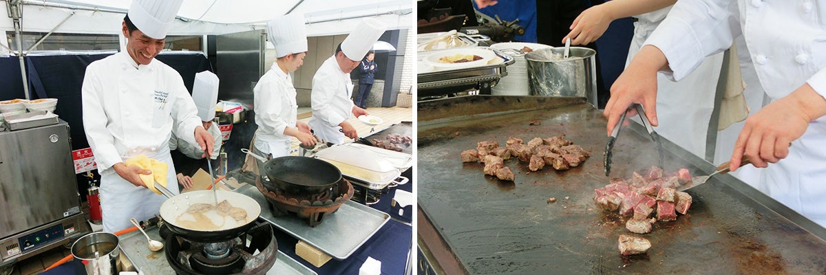 ホテルメイドのお料理をお気軽にお楽しみいただく、ホテル正面に 「オリエンタル広場」を設置しております。地域の皆様をはじめ県内外からお越しになる多くの皆様に、ホテルスタッフによる出来立ての料理をお楽しみいただいております。