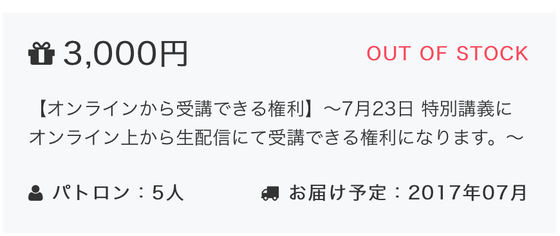開始からわずか1日で、「OUT OF STOCK」が2件! ご支援いただいた方、誠にありがとうございます!! 【オンラインから受講できる権利】3,000円▷▷▷OUT OF STOCK 【カメラマンになれる権利】5,000円▷▷▷OUT OF STOCK 尚、残りわずかのリターンも出てきました。。 【運営側に回れる権利】10,000円▷▷▷残り2人 というわけで・・・・ 別のリターンを3つ追加させていただきました! 【デザイナーになれる権利】5,000円 1名限定【ゲスト誘導ができる権利】10,000円 1名限定【限定1席の最前列プレミア席で参加できる権利】10,000円 1名限定 全て1名限定とさせていただいておりますが、、ぜひ一度ご覧ください^^