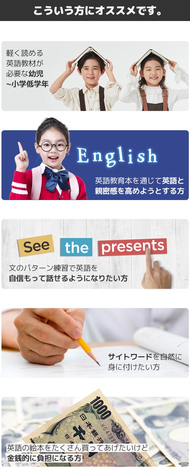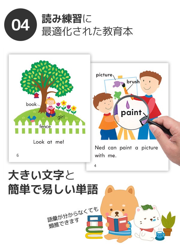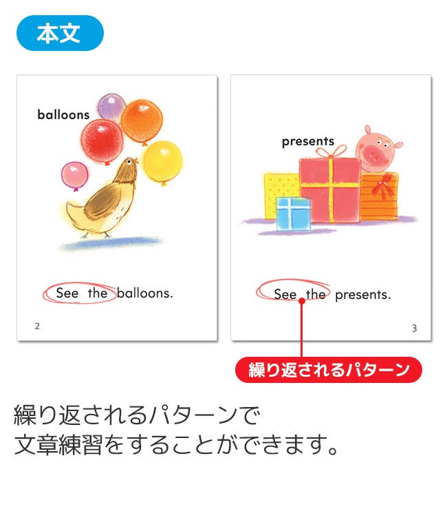 ネイティブの生々しい発音を聞きながら、絵と文章を一緒に見ると英単語とすぐ仲良くなりますし、単語を繰り返し見せることで、自然に絵とマッチして意味を類推することになります。