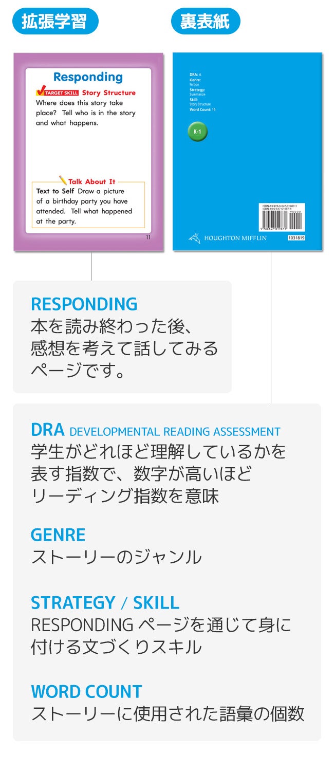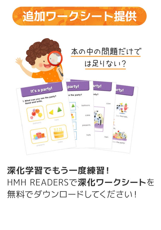長く退屈な一般の英語教育本に比べ、HMH BOOKは簡略化したストーリーで子どもに退屈さを与えず、興味をより簡単に感じることができます。