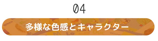 子どもたちのお気に入りのキャラクターと、さまざまなイラストや色味でできています。