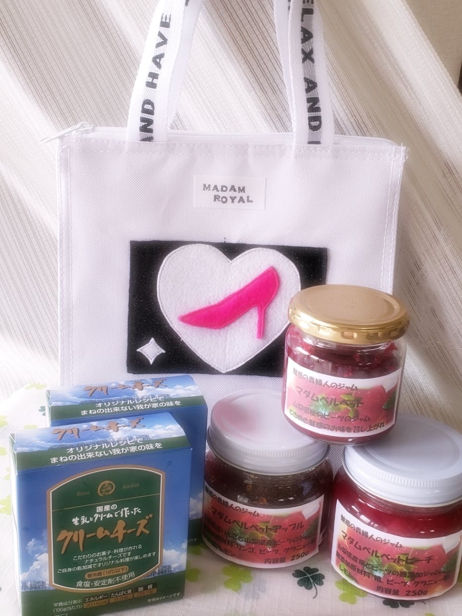 ③5000円コース➡「マダムベルベットピーチ」(ビーツと桃のジャム)250g1個+「マダムベルベットアップル」(ビーツとりんごのジャム)250g1個+クラウドファンディング限定「マダムベルベット」(ビーツのジャム)150g1個+いちやまマート特製クリームチーズ2個+ジャムとビーツの簡単料理レシピ+お礼の手紙