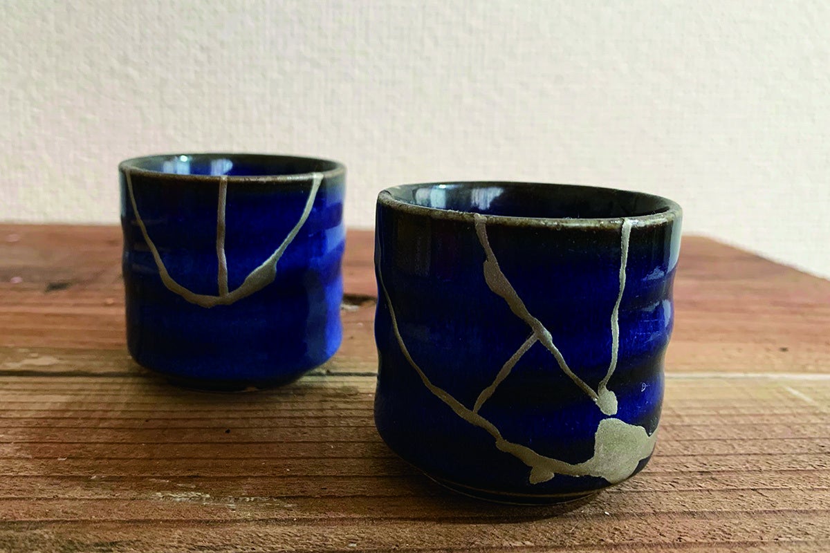 欠け、割れ、ひびなどで破損した陶磁器を漆でつなぎ、金属粉(金粉、銀粉など)を蒔き、破損前とはまた違った魅力を生み出す伝統工芸です。室町時代から親しまれているんですよ。