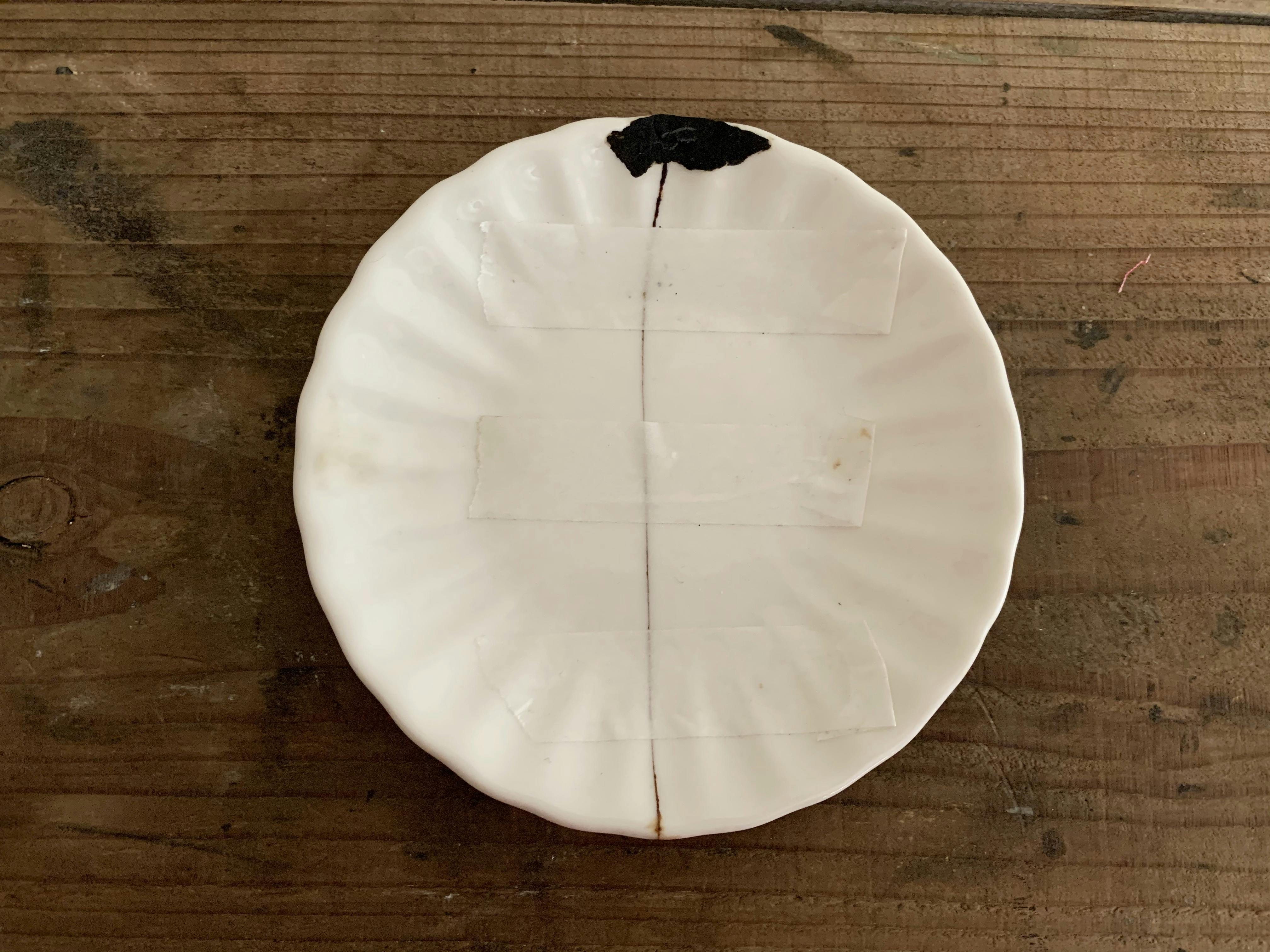 まずはお皿の表面、表面が乾いたら、裏面も同じように塗って乾かします。