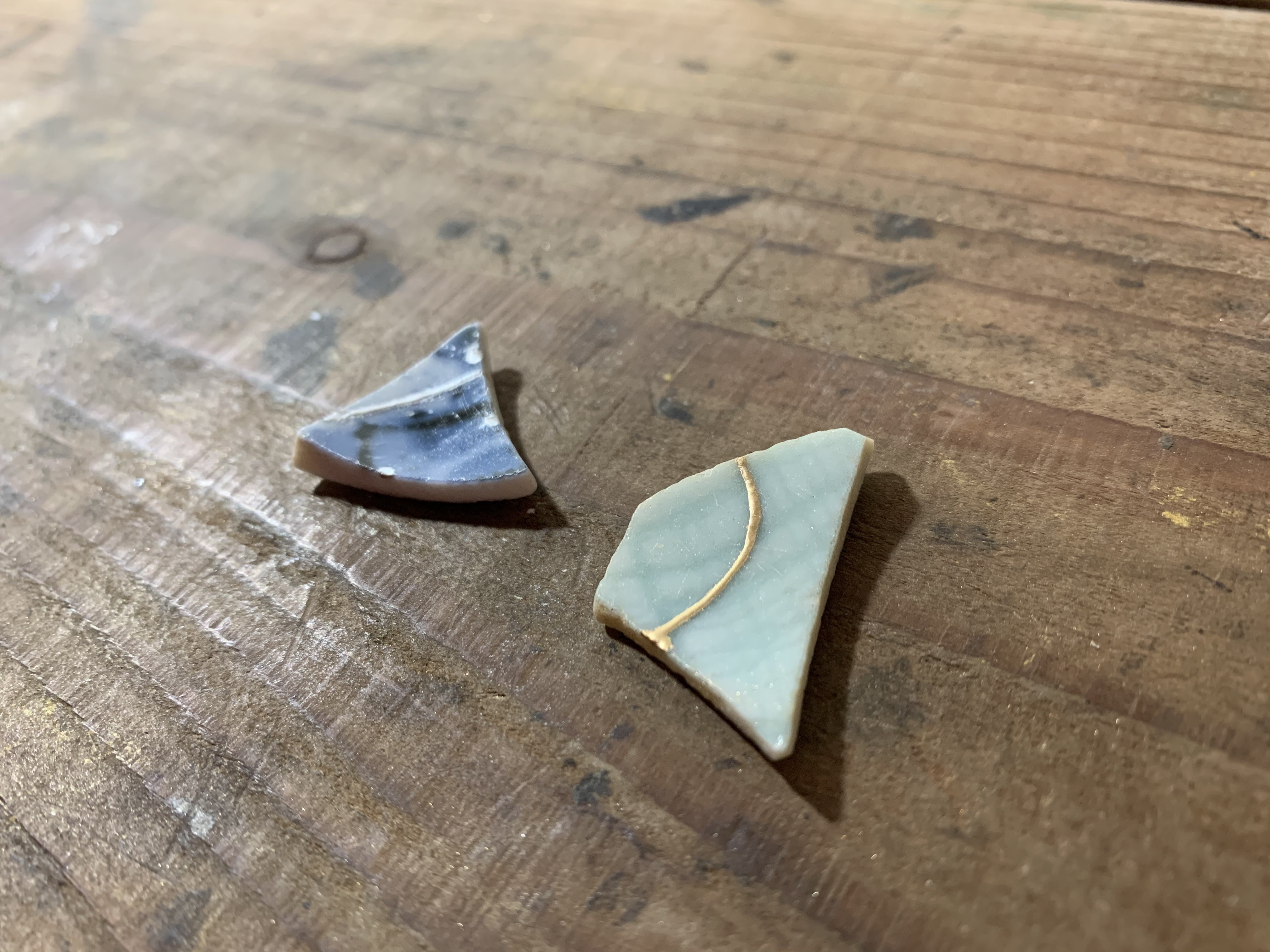 こんにちは。あたたかいご支援とメッセージ、またお気に入り登録をありがとうございます。本日から、割れたお皿を実際に修繕していこうと思います!いつもの作業より少し急ぎ足で、本日からプロジェクト終了までに完成まで仕上げたいと思いますので、見守っていただけますと幸いです。修繕するお皿は白磁の小皿です。スパーンと真ん中で割れています。欠けも見られます。断面の接着+パテ埋め の作業が必要です。今日は、断面の接着をしていきます。爪楊枝を使って、薄く薄く生漆を断面にのばしていきます。生漆には、少量の水に溶かした小麦粉を混ぜています。小麦粉のデンプンによって、漆の接着剤としての強度が増していきます。両面を塗り終えたら、圧着させます。断面にズレがないか、指で触ってしっかりチェックします。ぴったり!乾燥の間にもズレてしまわないように、マスキングテープで固定します。ここで今日の作業は一旦終了です!次回は欠け部分のパテ埋めをしていきます。最後までご覧いただきありがとうございました。引き継ぎよろしくお願いいたします。慈・繕