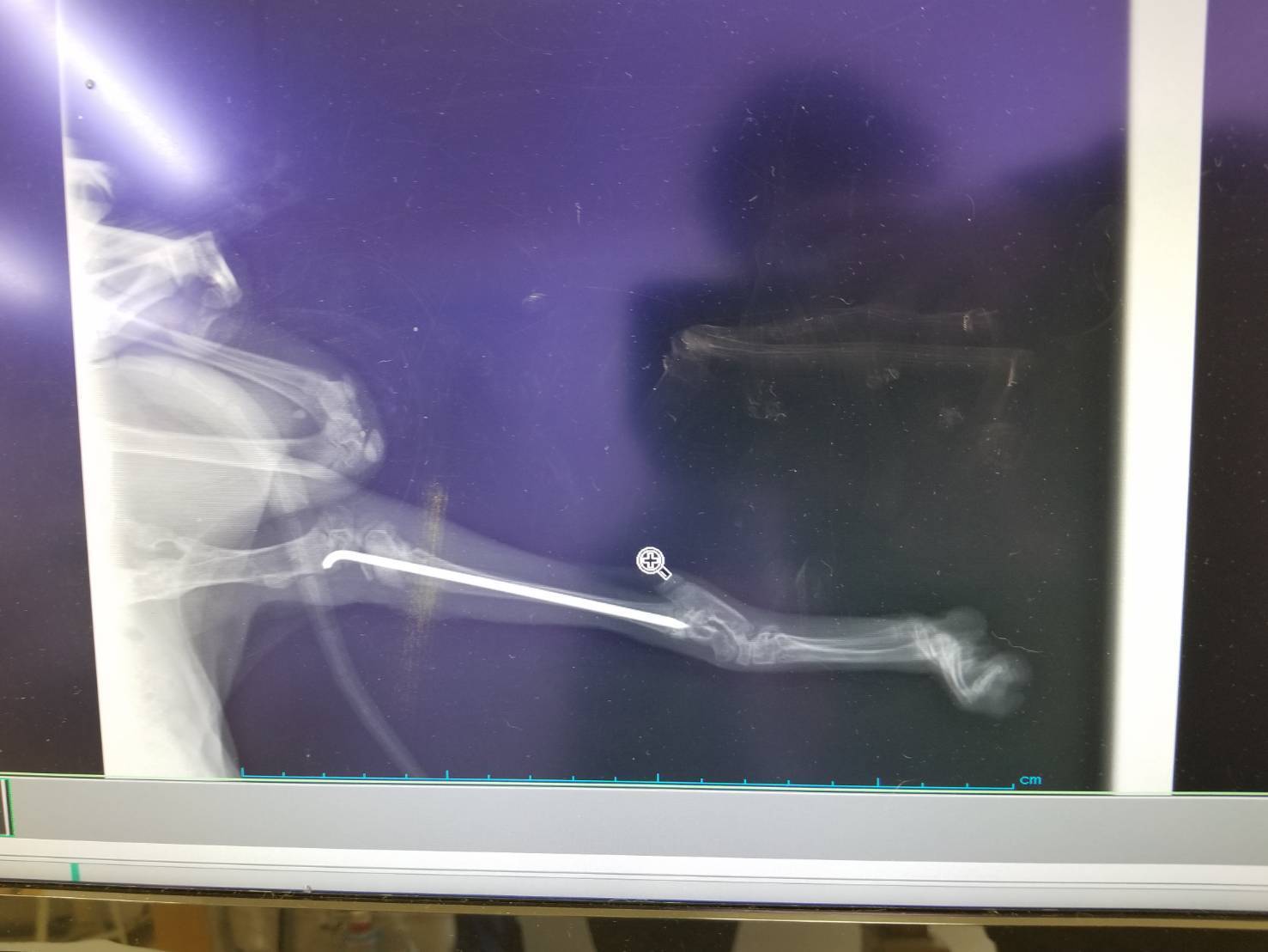 今回の手術で一本ピンが留置されていますがこちらは話し合いの結果、抜去の必要がない可能性が高いため、去勢手術の際に様子を見て必要なら行うこととなりました。