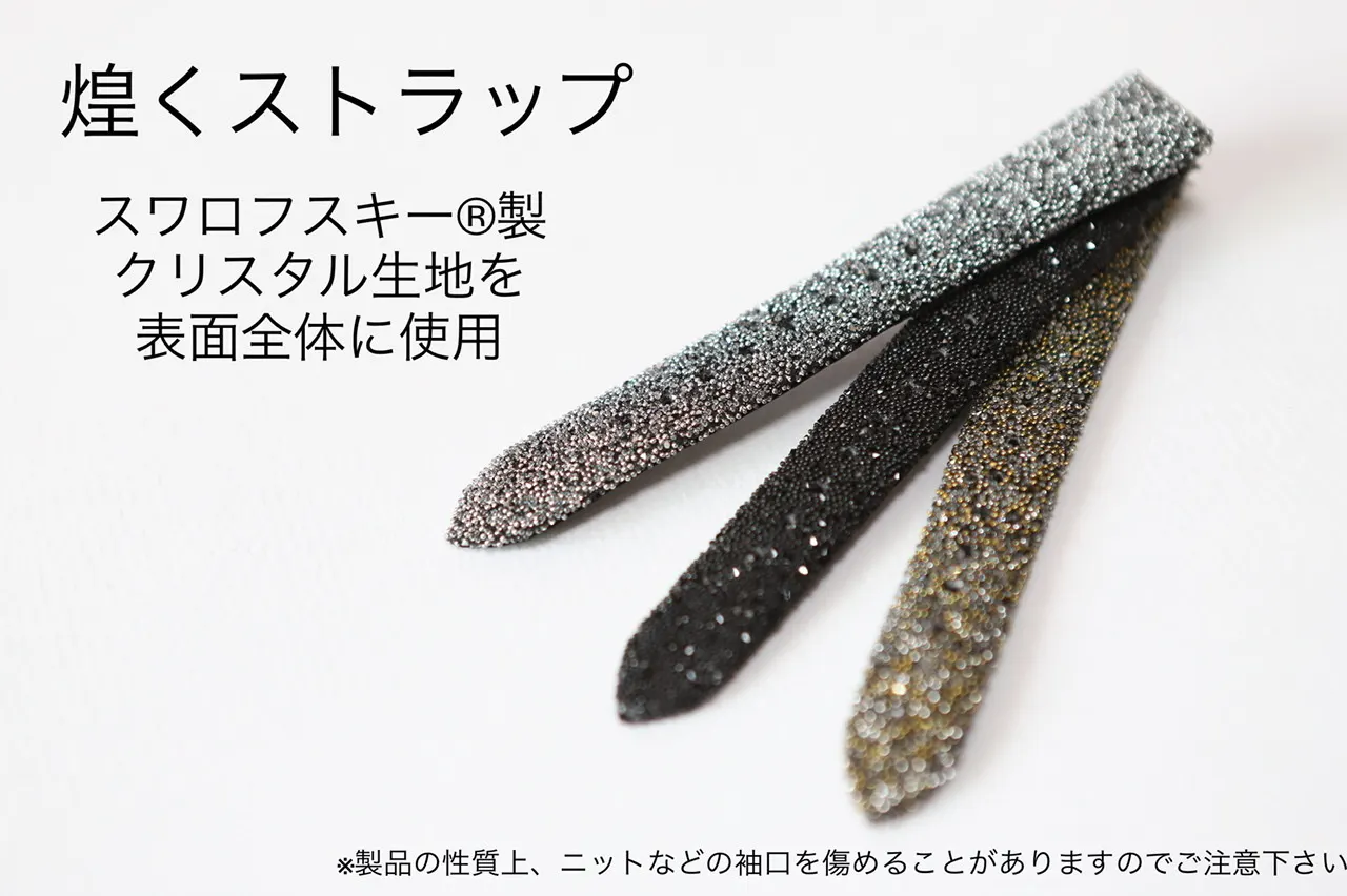 天然貝のキラキラと輝く文字盤に、スワロフスキー®クリスタルのベルト。 今までの腕時計にはない、ラグジュアリーな体験をしていただけます。