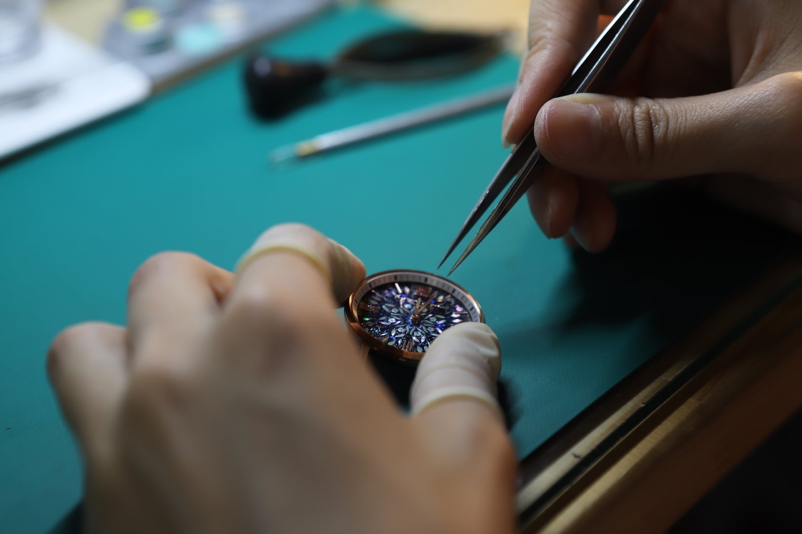 超高級時計と呼ばれる時計ブランドには螺鈿細工を文字盤に採用し たモデルが存在しますが、その特性から数は少なく、極めて高額で あり一部の愛好家のコレクションアイテムとしてのみ存在しています。