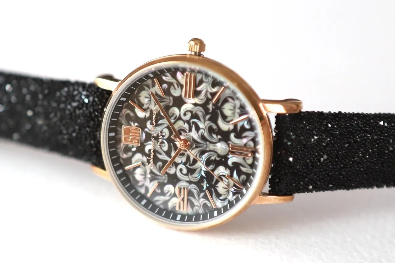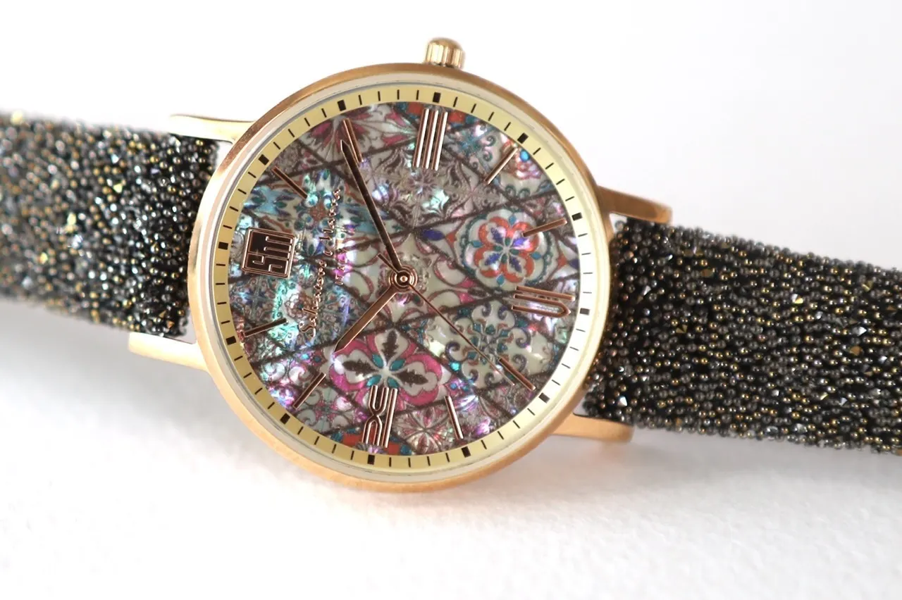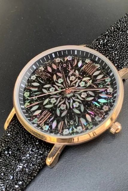 ②螺鈿アートウォッチ25%OFF 46,200円→34,650円 フラワーファンタジー ライト/フラワーファンタジーブラック/花菱 ※生産完了次第随時お届けします。受注状況によってはプロジェクト終了後2ヶ月程度期間を頂くことがございます、あらかじめご了承ください。