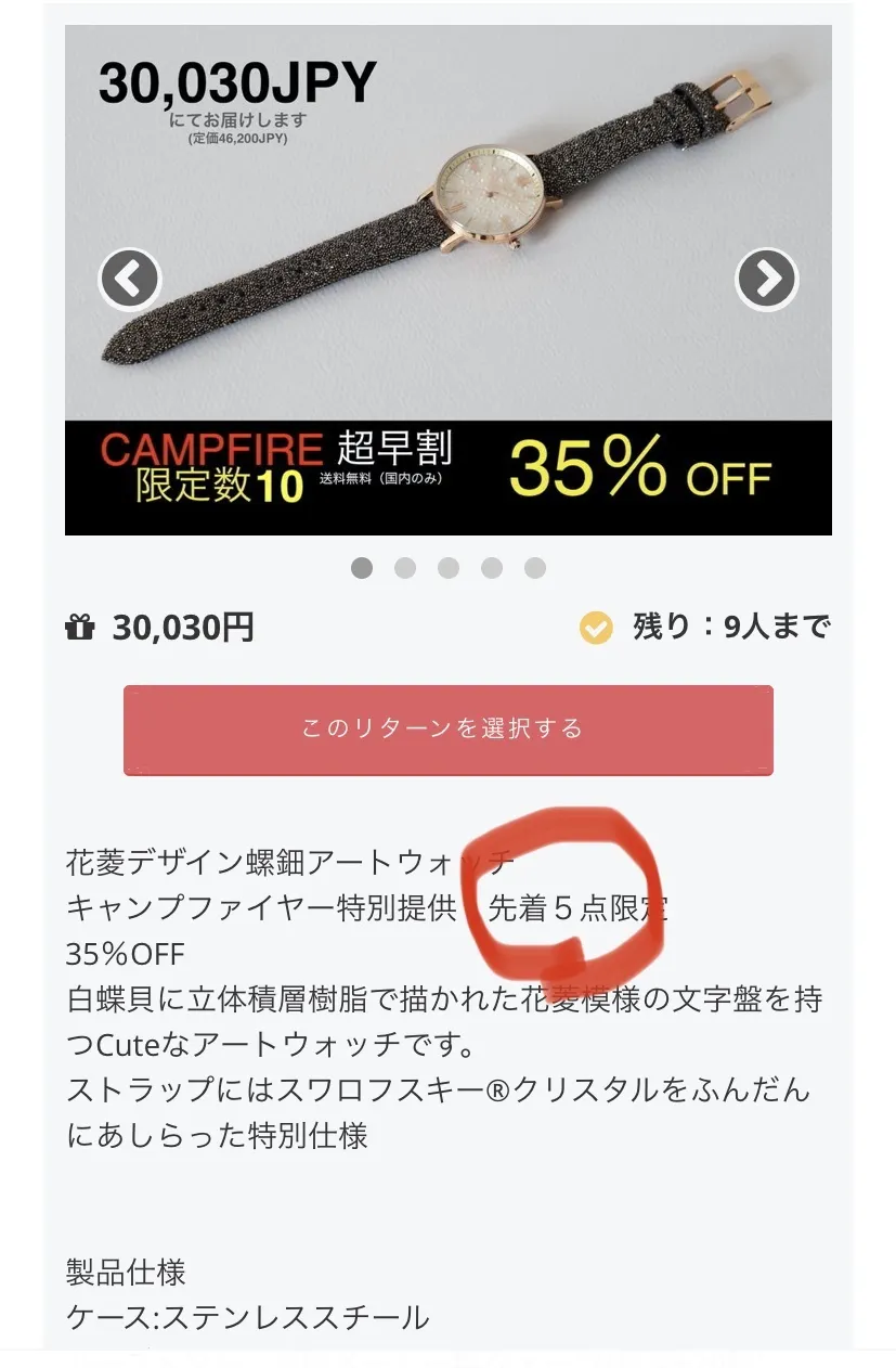 螺鈿アートウォッチ フラワーファンタジーライト・フラワーファンタジーブラック・花菱それぞれの超早割の限定数は各10です、文章では誤って5となっております