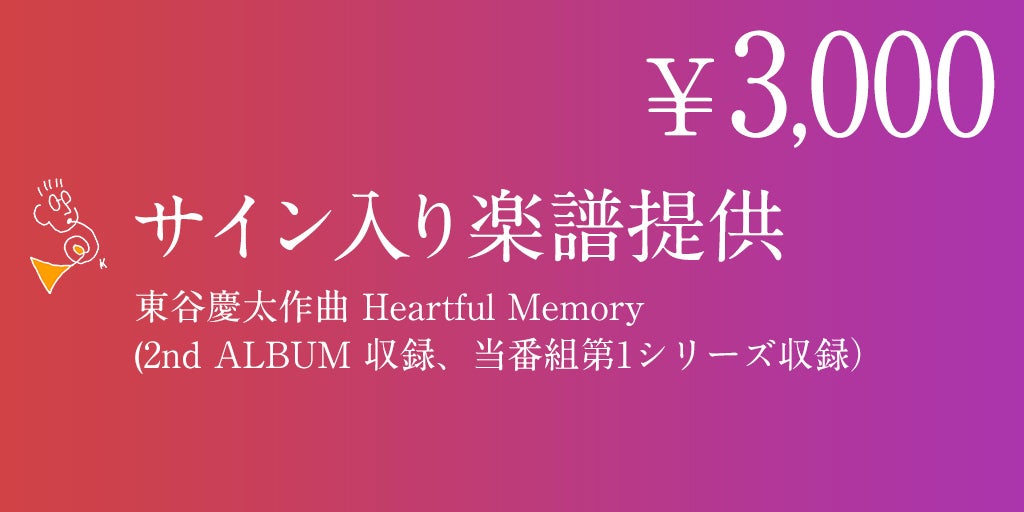東谷慶太作曲 Heartful Memory (2nd ALBUM 収録、当番組第1シリーズ収録)サイン入り楽譜提供