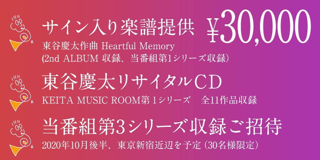 皆さまのあたたかい応援により、今後もこのYouTube無料配信KEITA MUSIC ROOM プロジェクトシリーズが継続できますよう、ご支援宜しくお願い申し上げます。