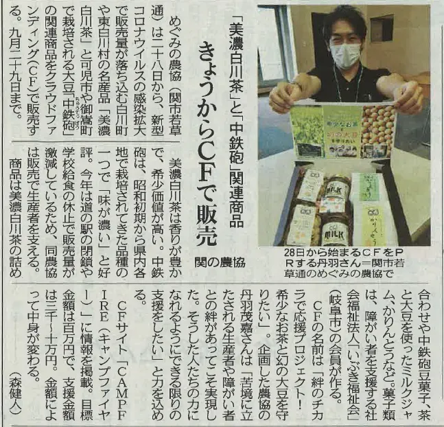 28日(金)の朝刊にて、中日新聞中濃版、可茂版と中部経済新聞に記事を掲載していただきました。農家さんや障がいのある方たちへの支援の思いが多くの方へ届くように願っております。