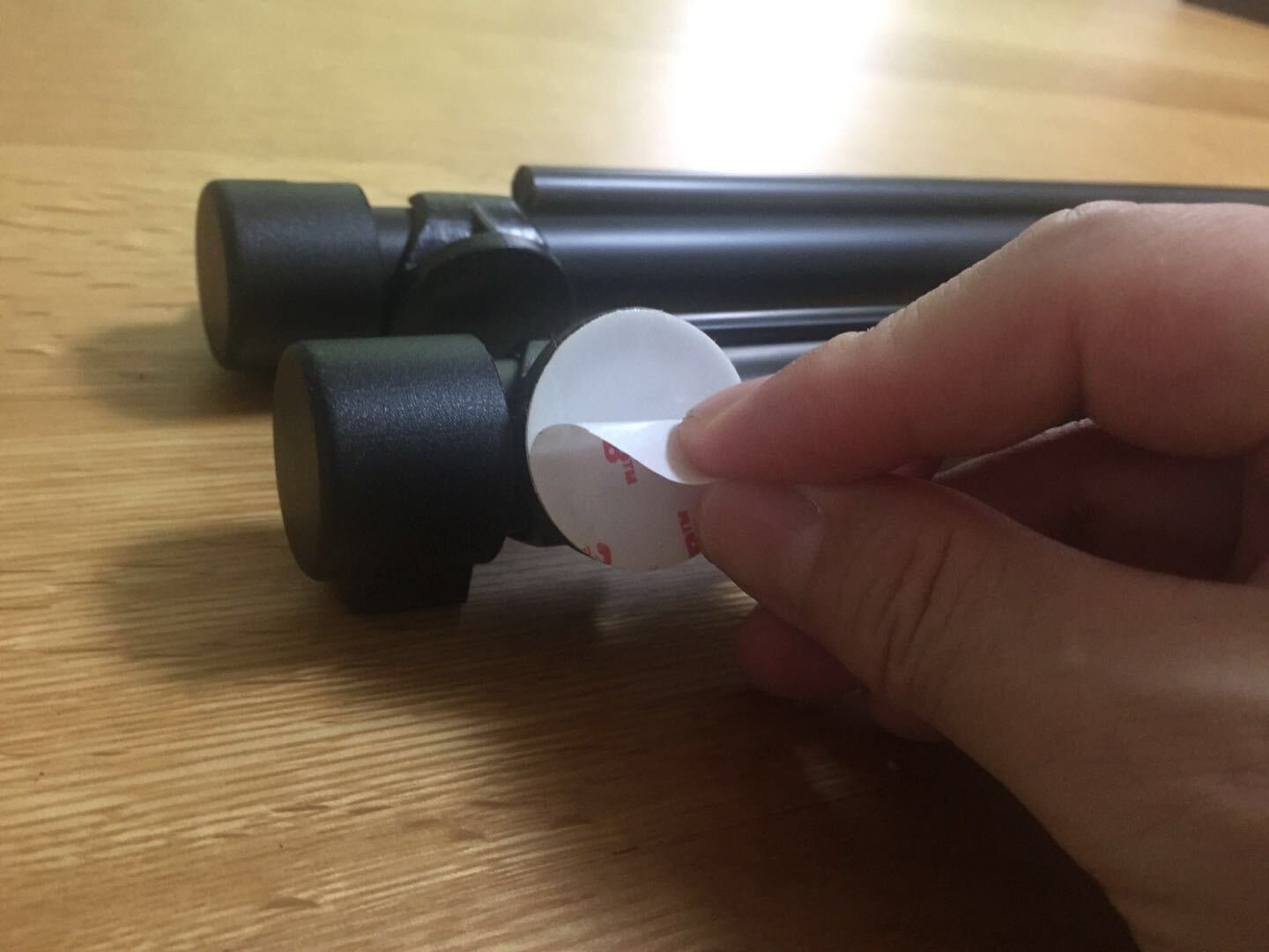 「収納パイプ」は付属の両面シールを使って装着します。