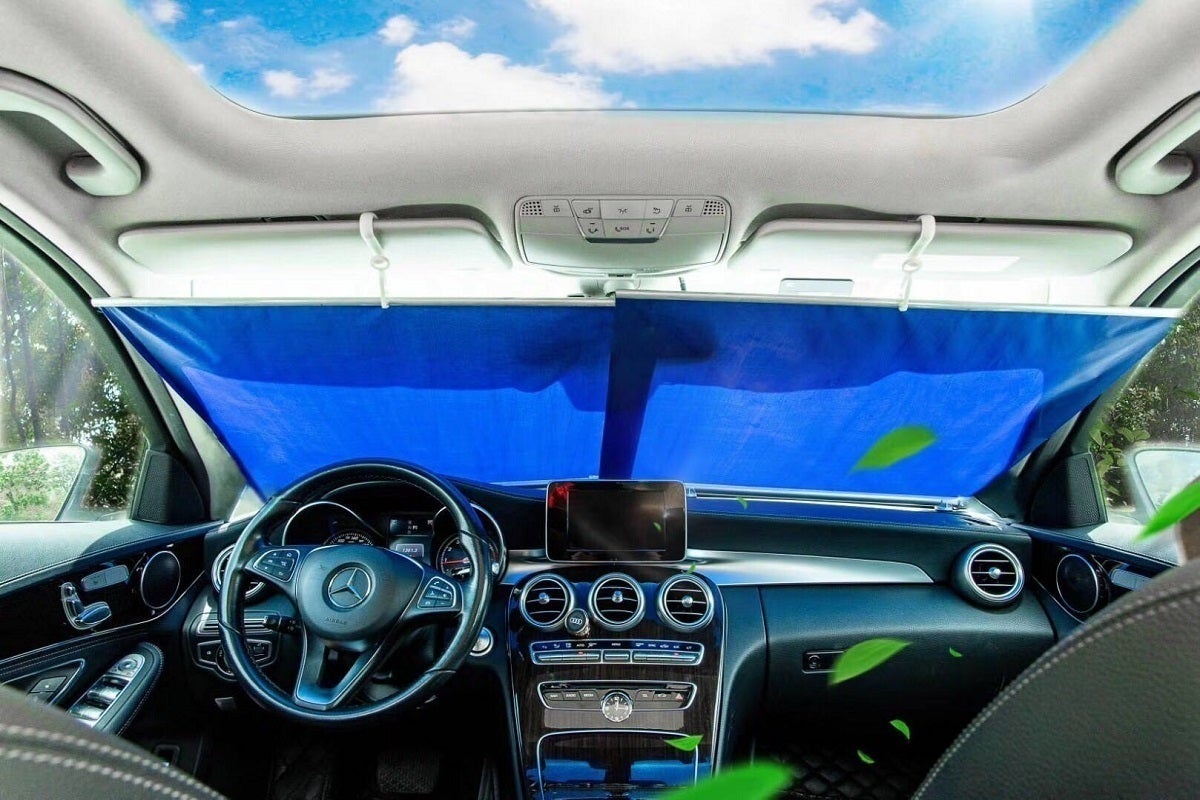 Q: 紹介映像には、2枚に分かれていない1枚でフロントガラスを覆うタイプも紹介されていますが?