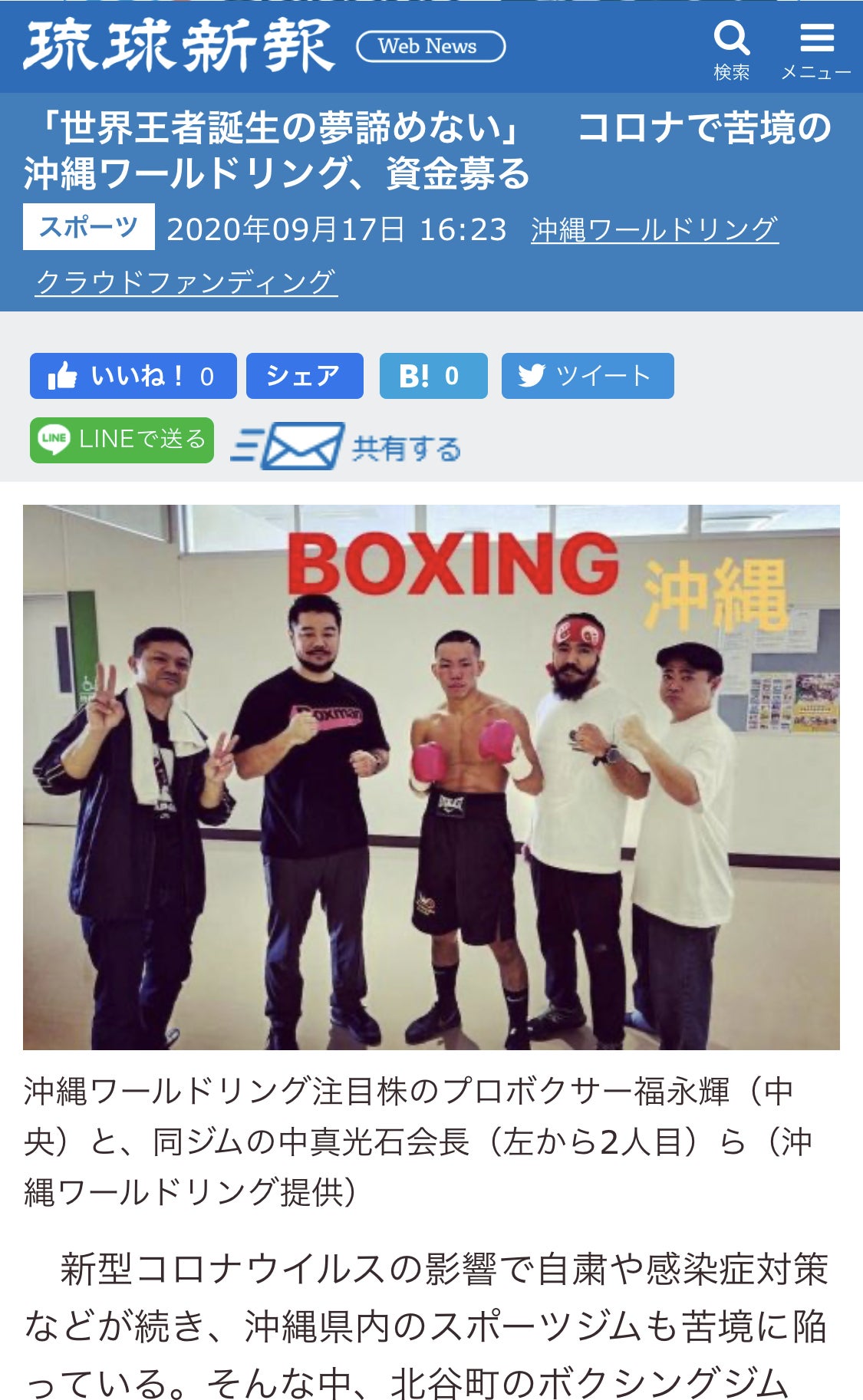 2020/09/29 12:59沖縄ワールドリング選手、クラウドファンディング詳細記事 もっと見る