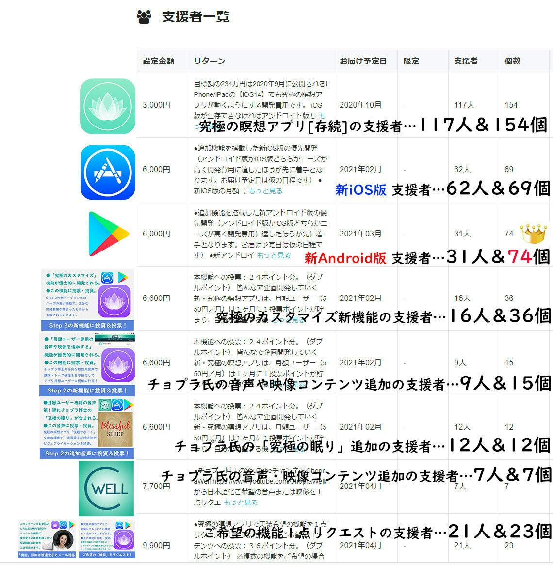 このままクラウドファンディングが終了すると、iOS14で何とか動作するようになった後に機能アップの開発に進むのはiOS版の「究極の瞑想」アプリとなり、アンドロイド版は古い開発プラットフォームのまま2020年11月2日以降は何かあっても修正できない(開発者不在の)状況となってしまいますので