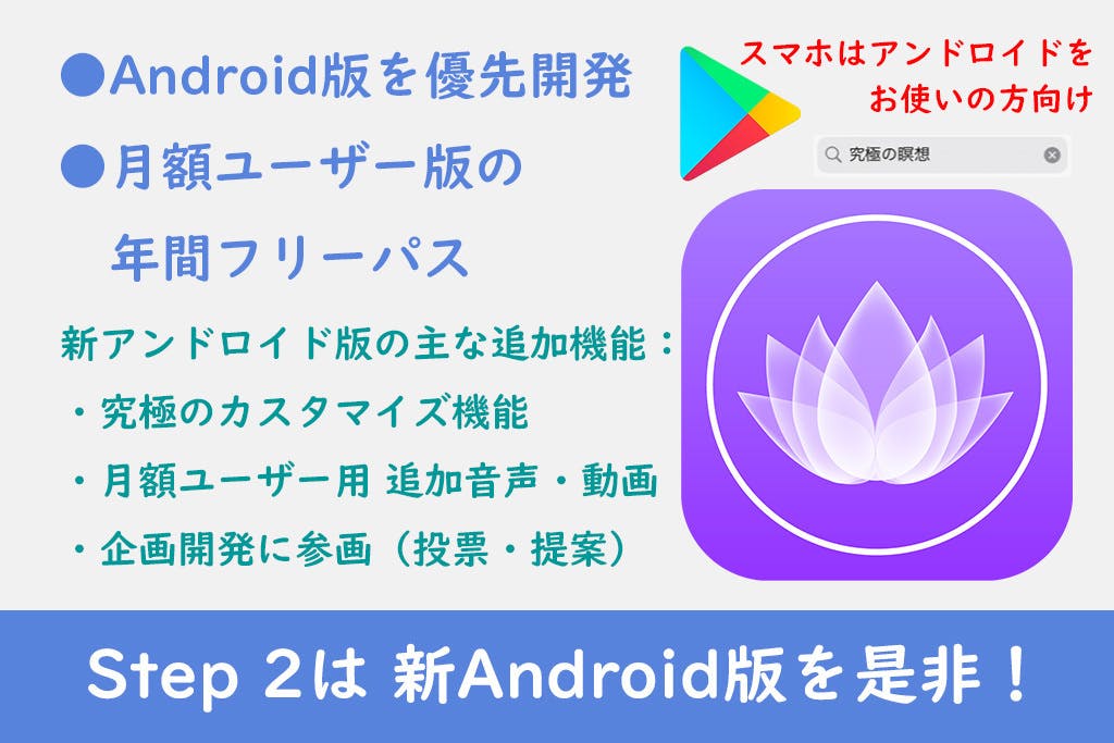 アンドロイド版の「究極の瞑想」アプリをご愛用頂いている方、ご支援いただけたらと思います。