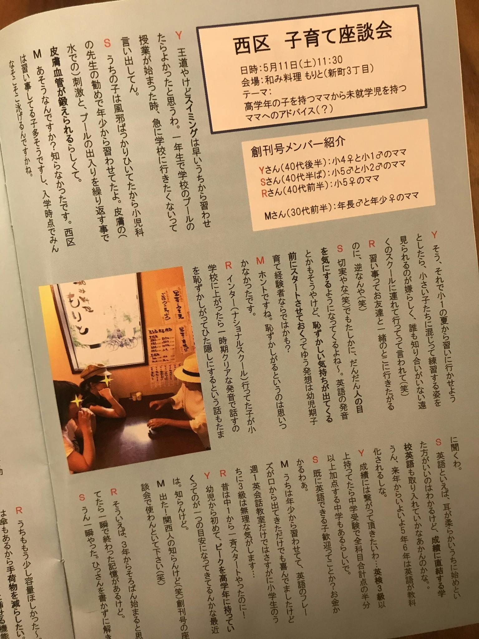 また、掲載主と読者との間の立場にいる私たちが表立って行動することで、西区を元気にすることができるのだと確信し、次号発刊に向けて活動を再開しました。