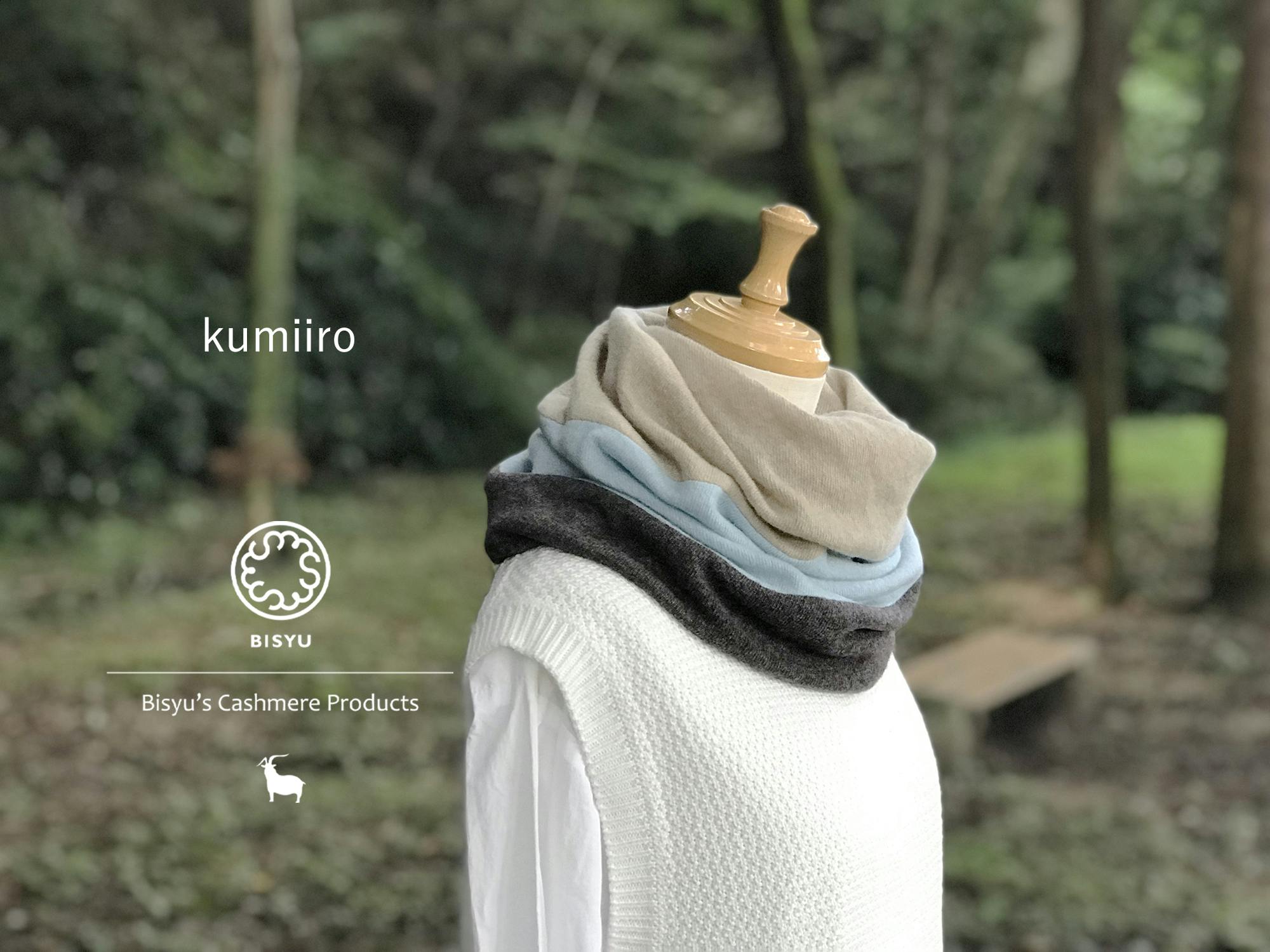今回のテーマは、[ 組み色=kumiiro ]カシミヤ原料独特の控えめな光沢感と奥行きのあるお色を組み合わせ、上質でちょっとだけ遊び心をくすぐるスヌードとマフラーを製作しました。