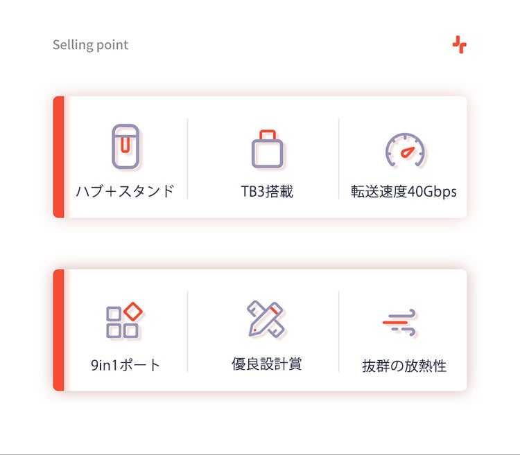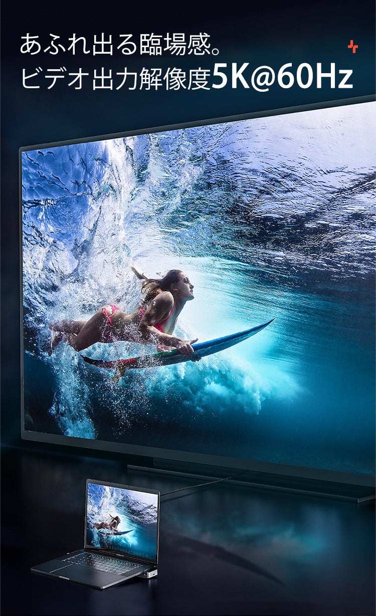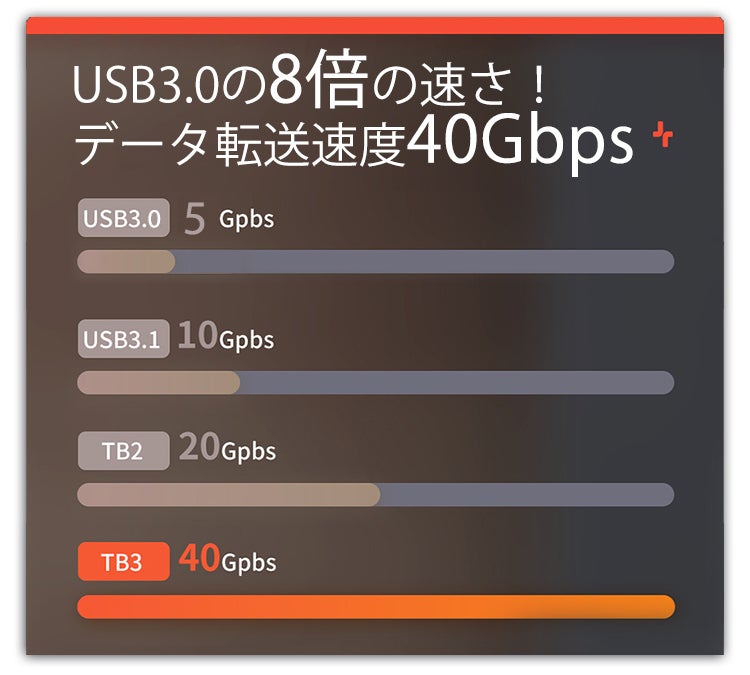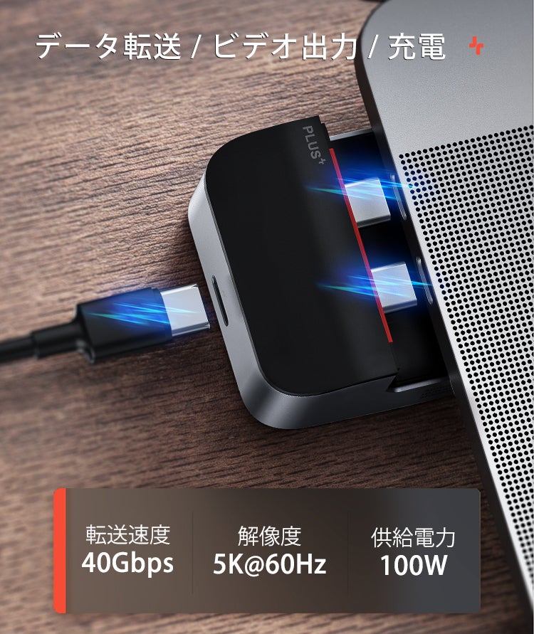 40Gbpsのデータ転送、5K@60Hzのビデオ出力、最大100Wの電力供給をサポートします。