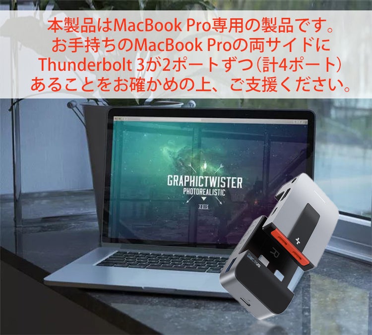 ・本製品は、MacBook Pro 2016以降 13インチ(4ポート)/15インチ/16インチにのみ対応しています。