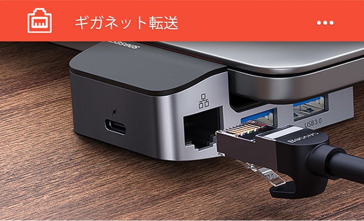 1000BASE-Tのギガネット転送をサポートする、RJ45コネクタ。ダウンロード待ち時間の短縮に。