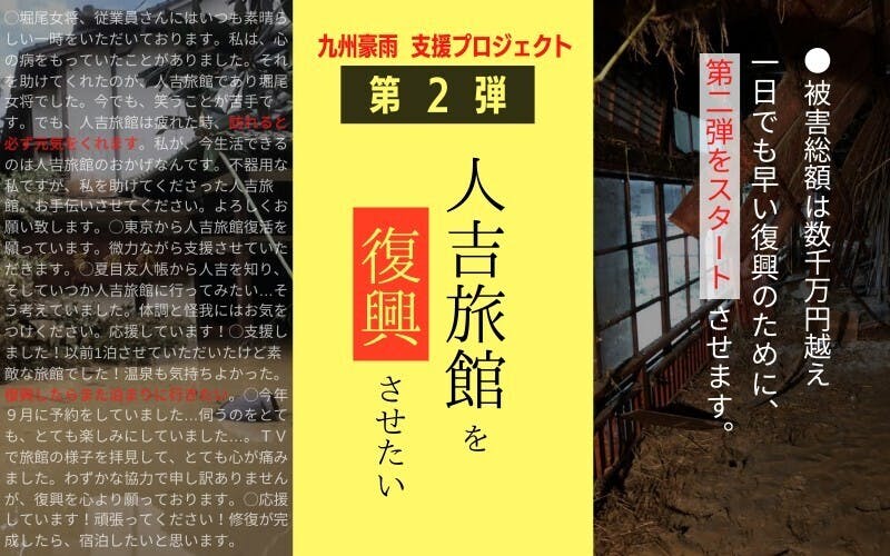 人吉旅館を想ってくださる方々に、1日でも早く恩返しができますよう、復興に力を入れていきたいと思います。