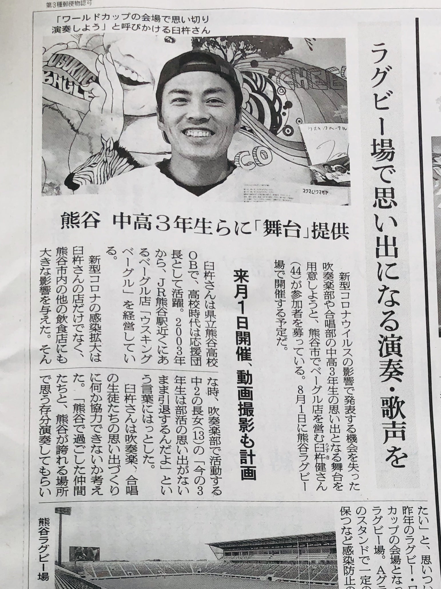 ご支援者さまからのメッセージを拝読し、感涙に咽ぶような朝です。この企画は広く伝わるはずだと自ら信じてはいました。それでもプロジェクト立ち上げ当初は本当に共感頂けるのか、物凄く不安でした。メッセージを拝読し、ご支援頂く皆さまの中高生への想いをひしひしと感じました。皆さまの想いもしっかりと参加のみなさんに伝えながら、例え曇天であれ、晴れ晴れとした気持ちでのびのびと安心して演奏出来るよう準備致します。ご支援の皆さまには改めて感謝申し上げます。ラグビー場で、のびのび演奏撮影会主催 熊谷ラグビー合唱団 団長 臼杵健