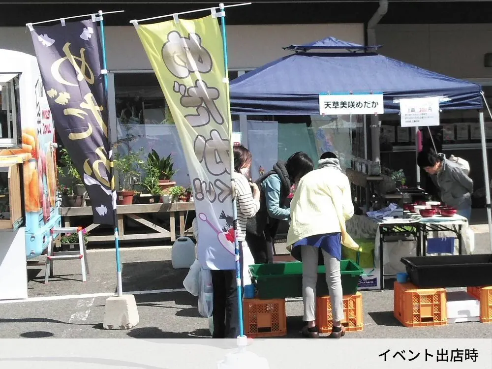あなたの町でおこなわれるイベント等、支援者様が希望する場所に出向きメダカ掬いのイベント出店させていただきます。もちろんメダカ掬いで発生する売り上げは一切いただきません。