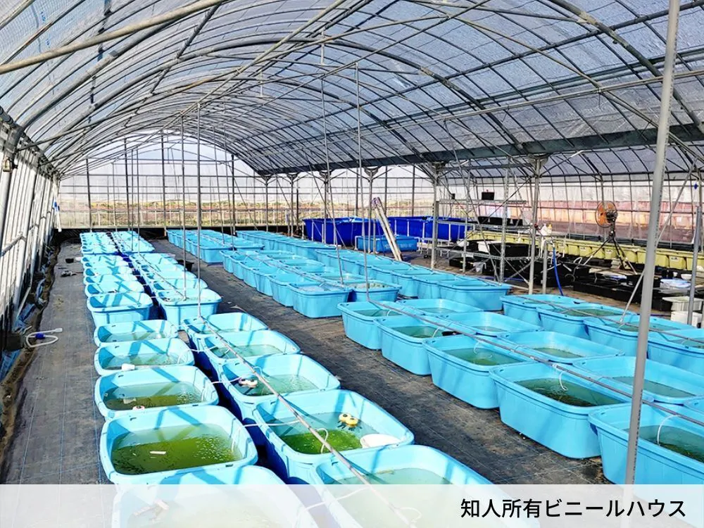 そこで、寒さを防ぐためのビニールハウスを建て、そこでメダカを飼育することで冬の間も育成ならびに繁殖を続けることができます。